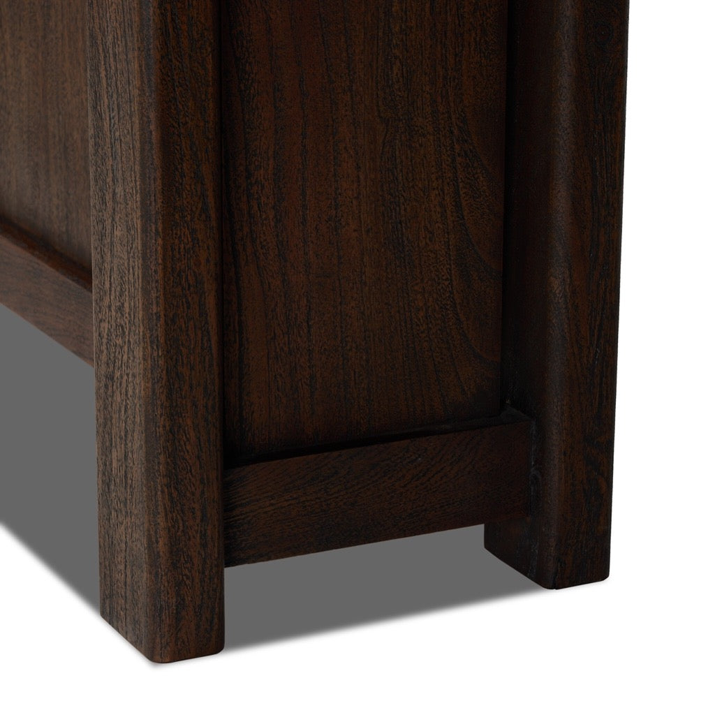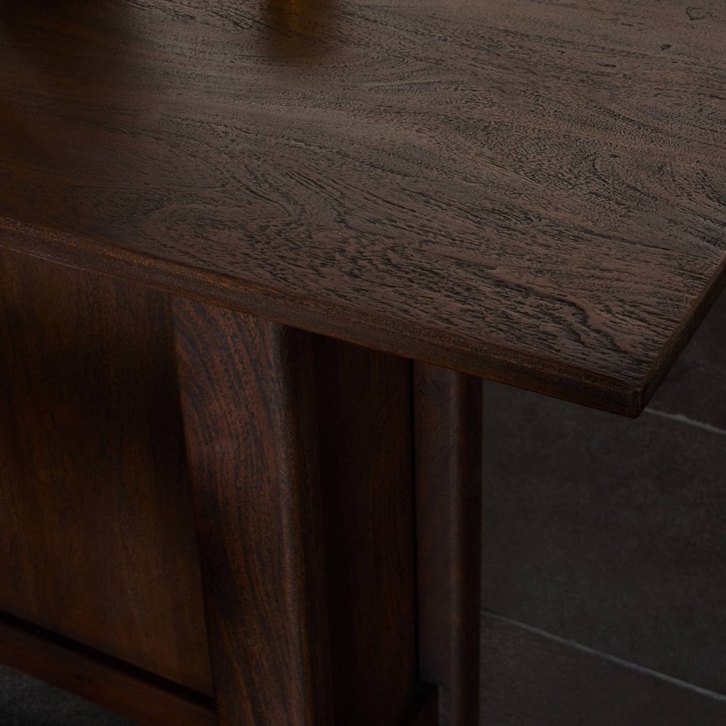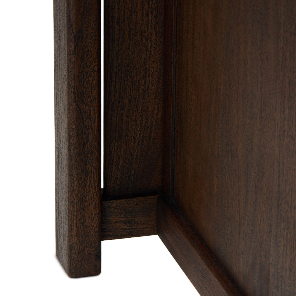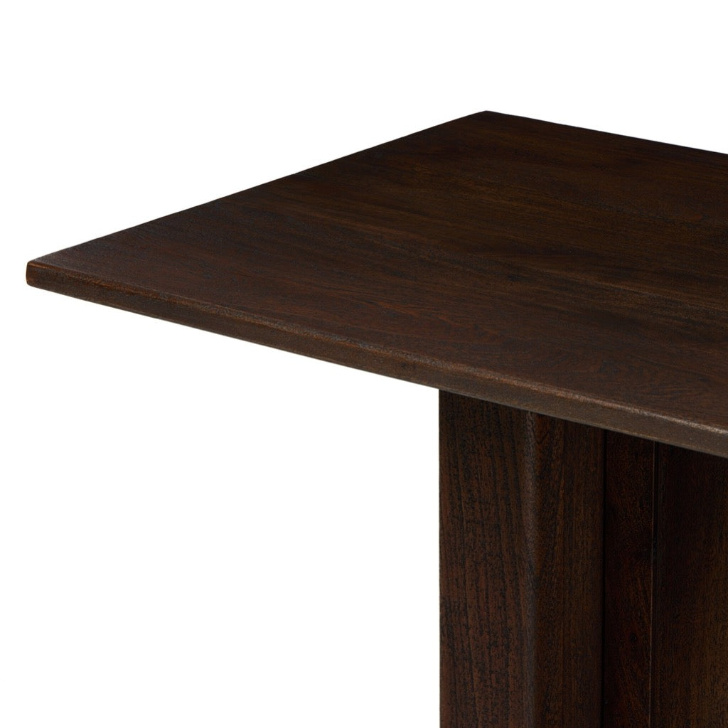 Narrow, versatile and ideal for smaller spaces, this counter-height bar table offers an alternative to the workspace or dining nook. Crafted from dark brown acacia wood.