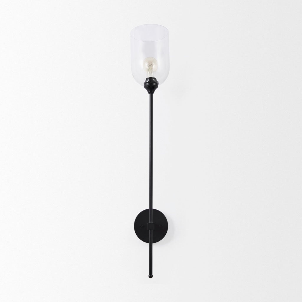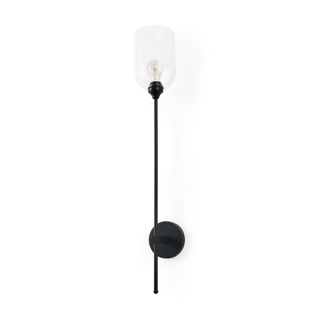 The Clyde is a ravishing wall sconce that features a glass bulb affixed to wall base by a sleek, extended metal column.