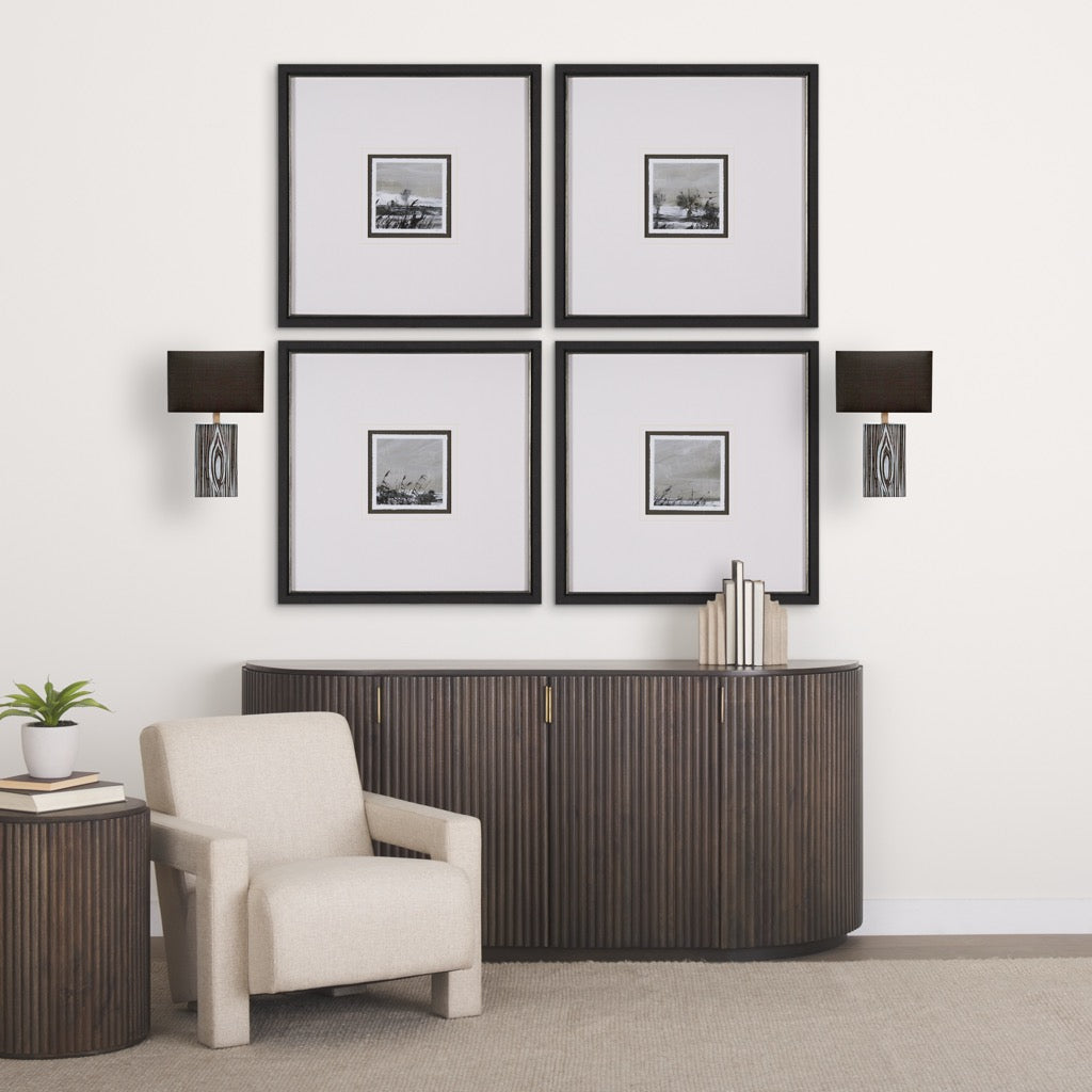 The Maravilla is an impressive wall sconce featuring a rectangular shade atop an ornately patterned ceramic base.