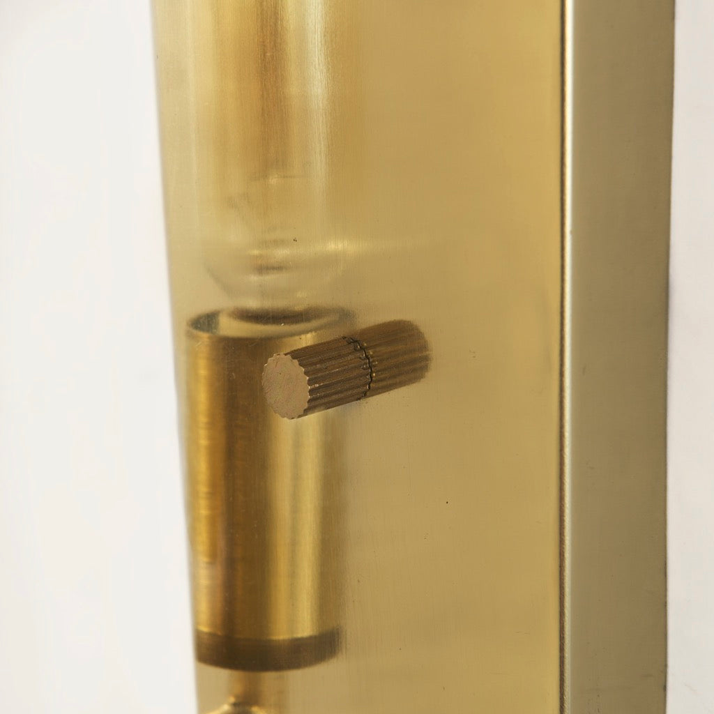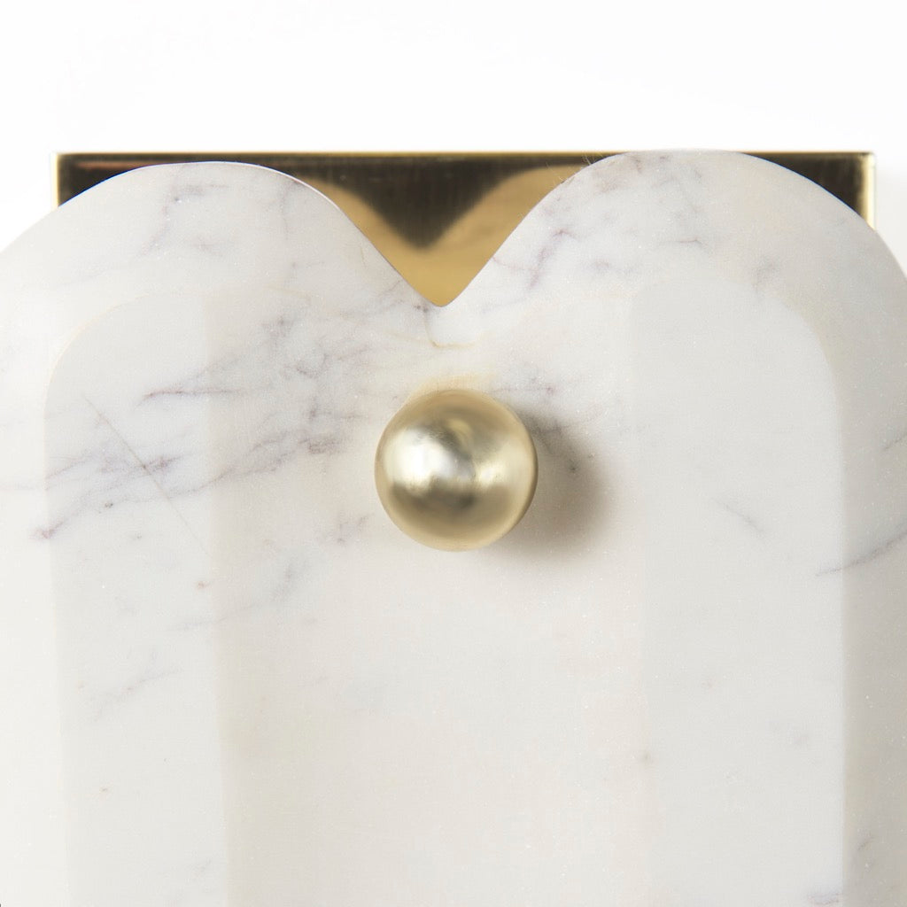 A combination of smooth white marble and rich gold metal results in a tastefully eccentric wall sconce.