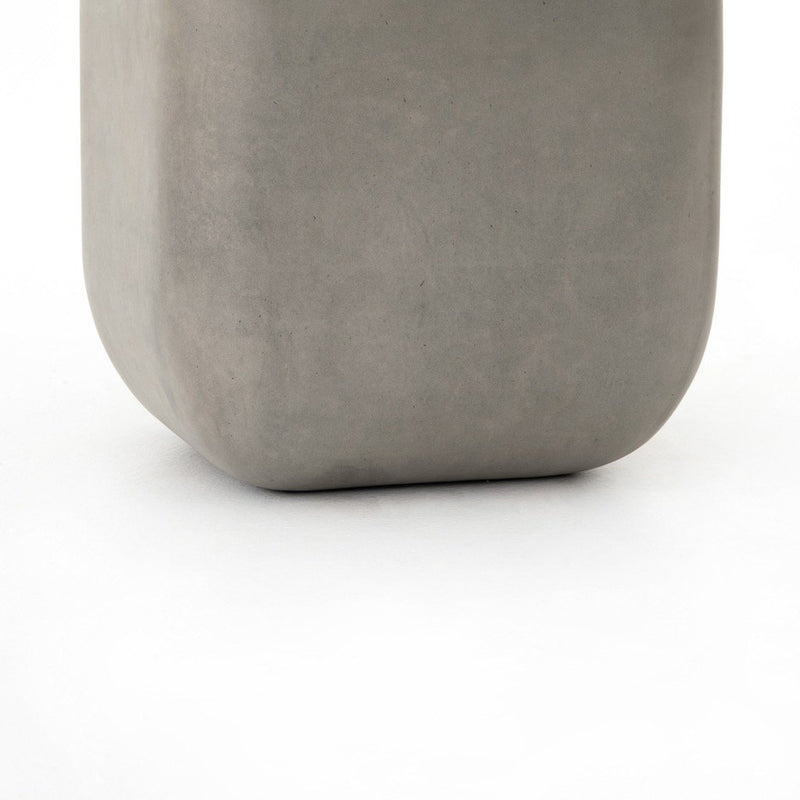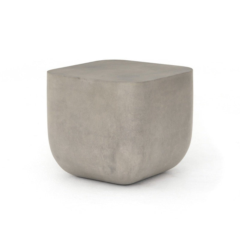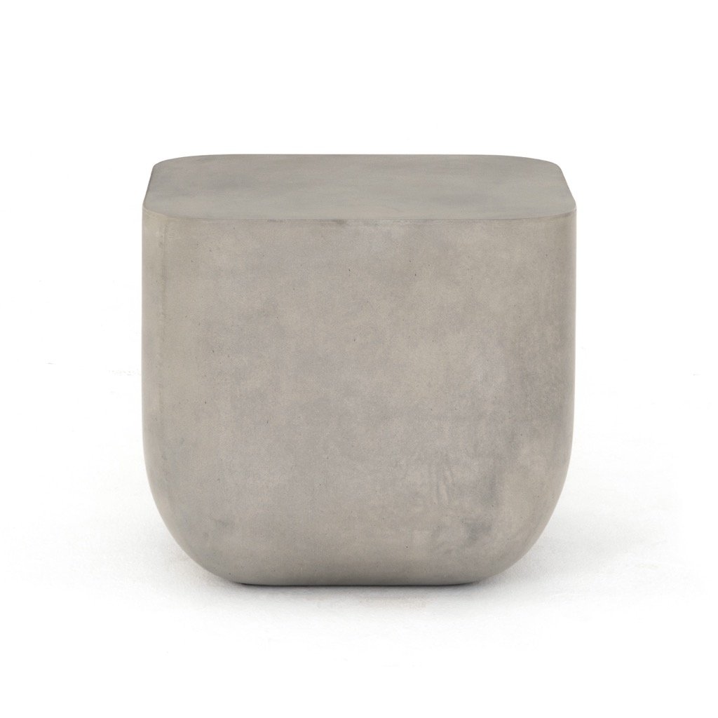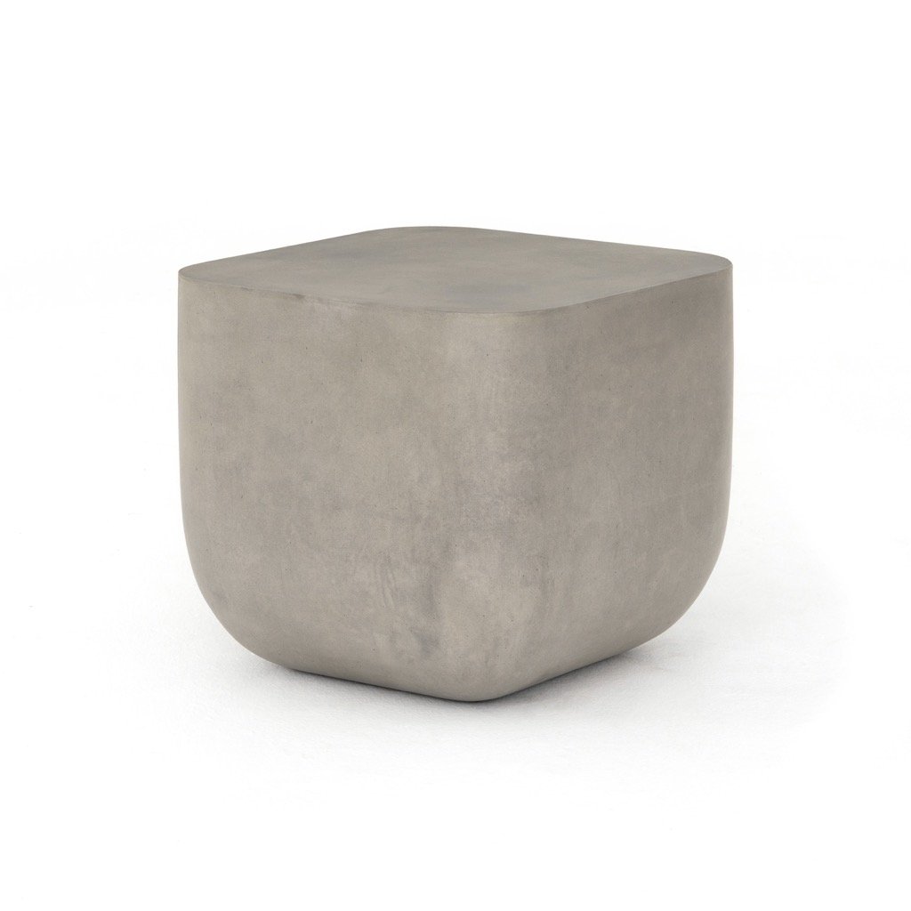 Grey-finished concrete and soft square shaping make for an effortlessly cool end table, indoors or out. Cover or store inside during inclement weather and when not in use.