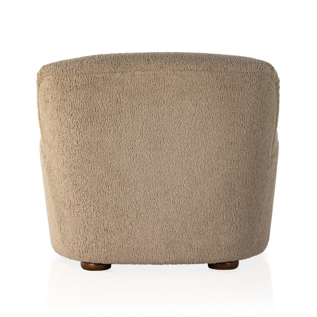 Simply classic. A high wing back pairs with softly rolled arms for a curvy look and supportive sit. Tan shearling-like upholstery invites you to kick back and relax.