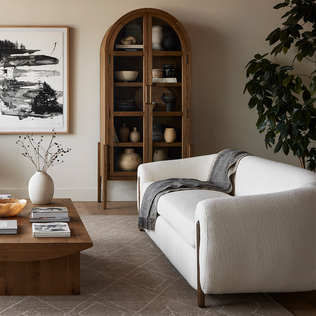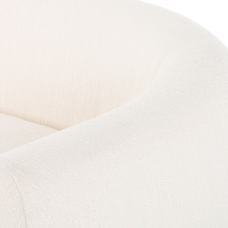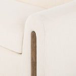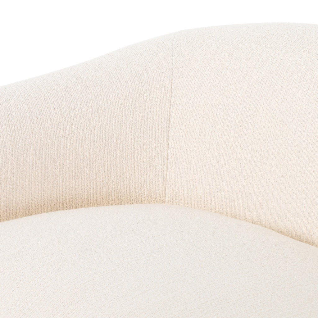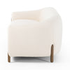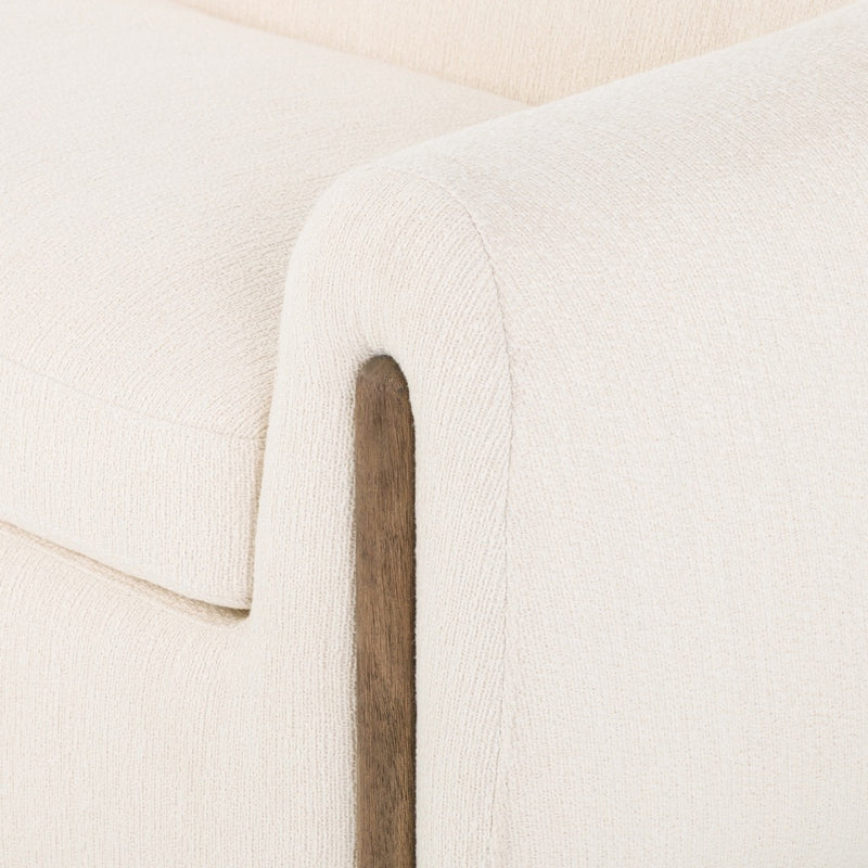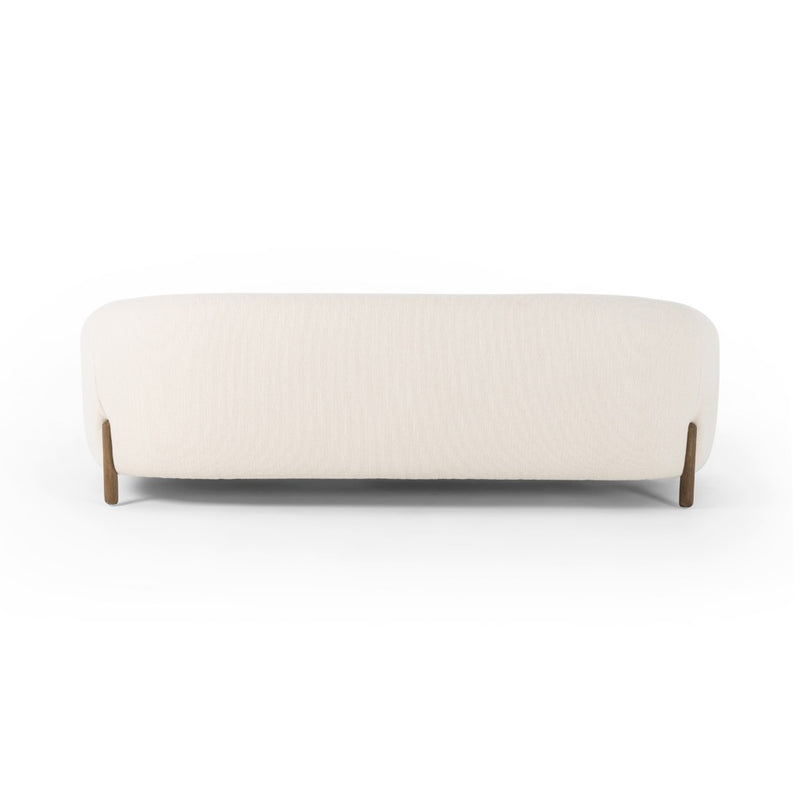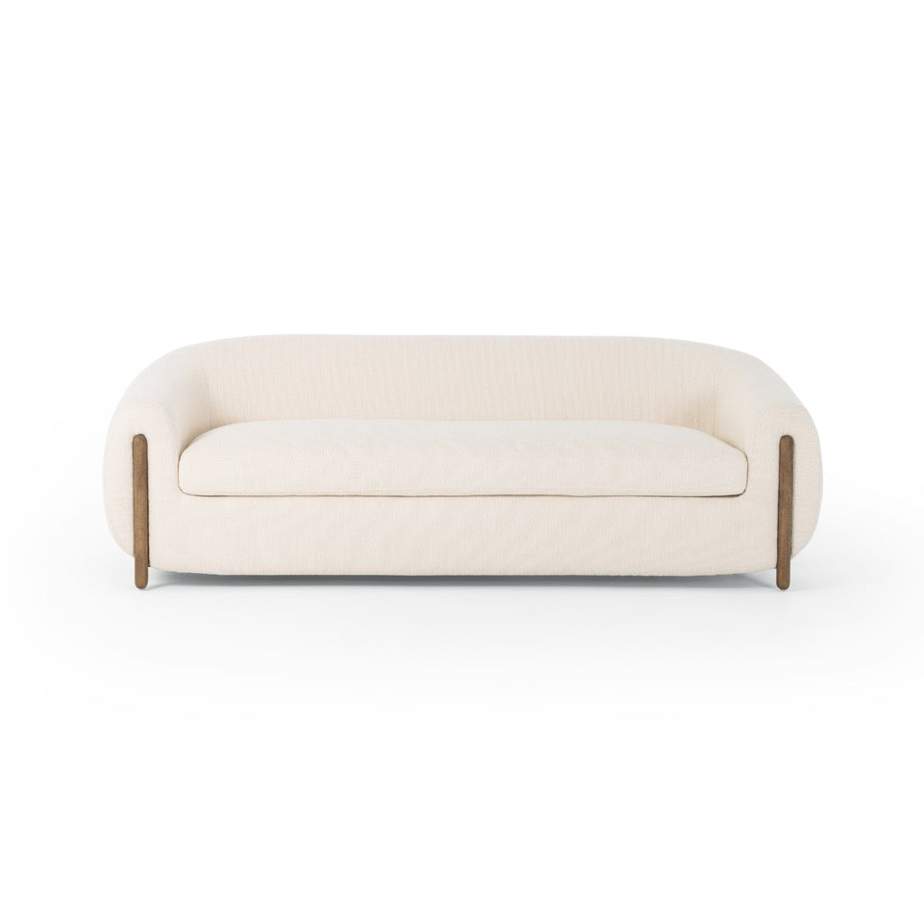 A fresh, elongated take on the traditional tub chair, with exaggerated depth for drama and comfort. Solid parawood legs intersect ivory upholstery on this plush sofa for clean contrast of color and scale. Performance fabrics are specially created to withstand spills, stains, high traffic and wear, ensuring long-term comfort and unmatched durability.