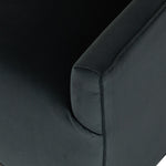 Small scale, substantial comfort. Precisely-tailored seating in a smoky velvet that offers a touch of light movement. Moss-tinged charcoal hue adds a fashion-forward twist.