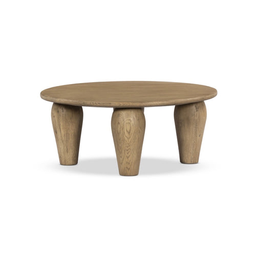 Abaso Round Coffee Table - Rustic Wormwood Oak