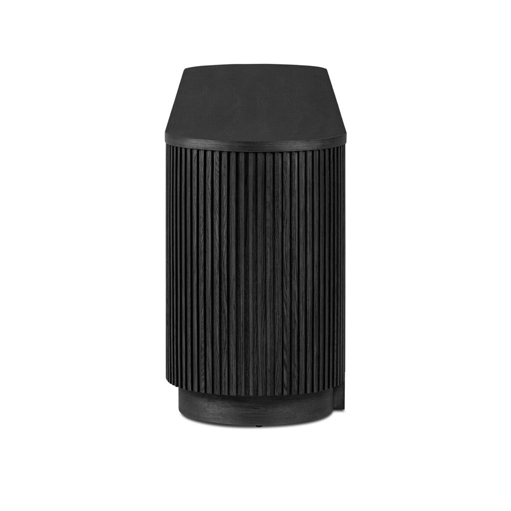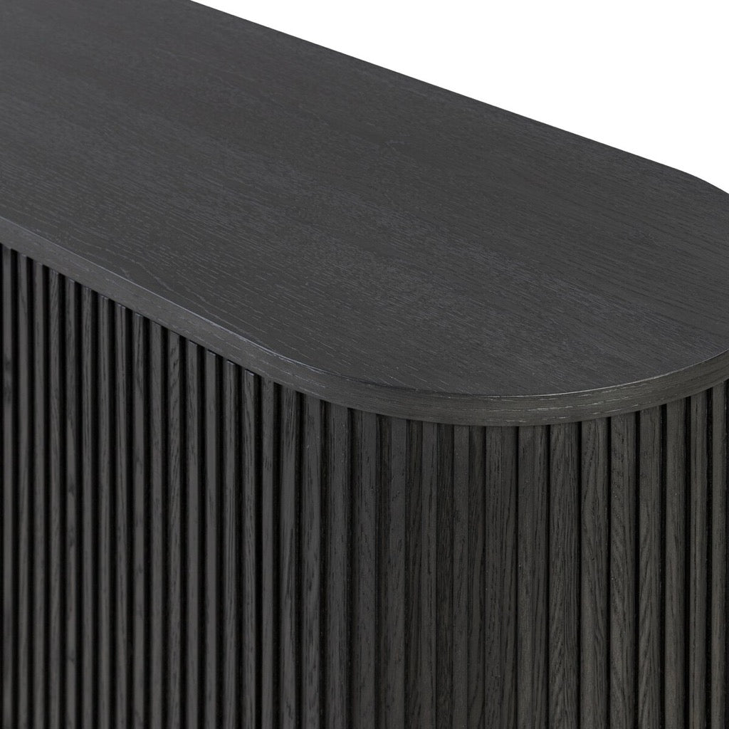 Crafted from desert oak solids and veneers with a plinth-style base, rounded sides and linear reeding, this sideboard exudes midcentury vibes. Fully finished interior and shelves for quality detailing inside and out.