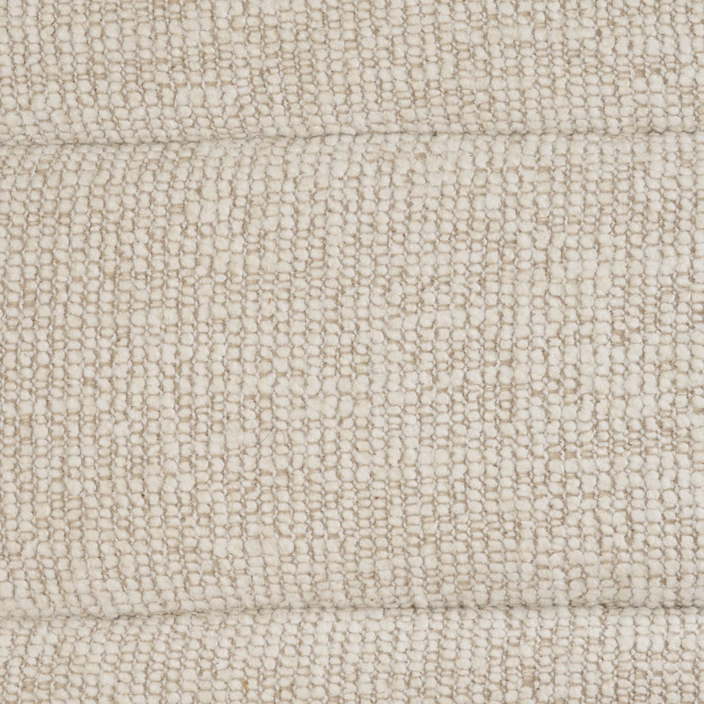 - Materials: Wide-channel cream and oatmeal blend fabric with a natural jute fiber back panel