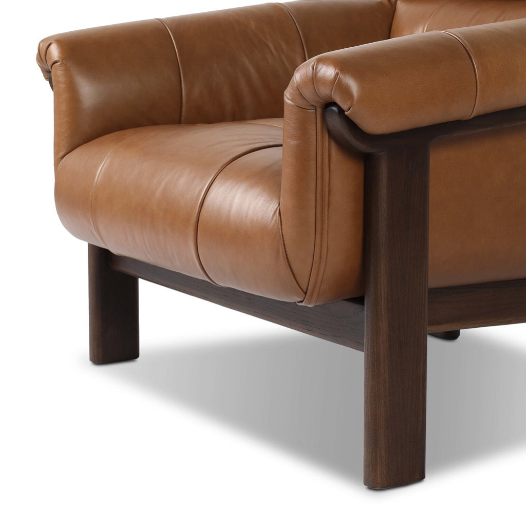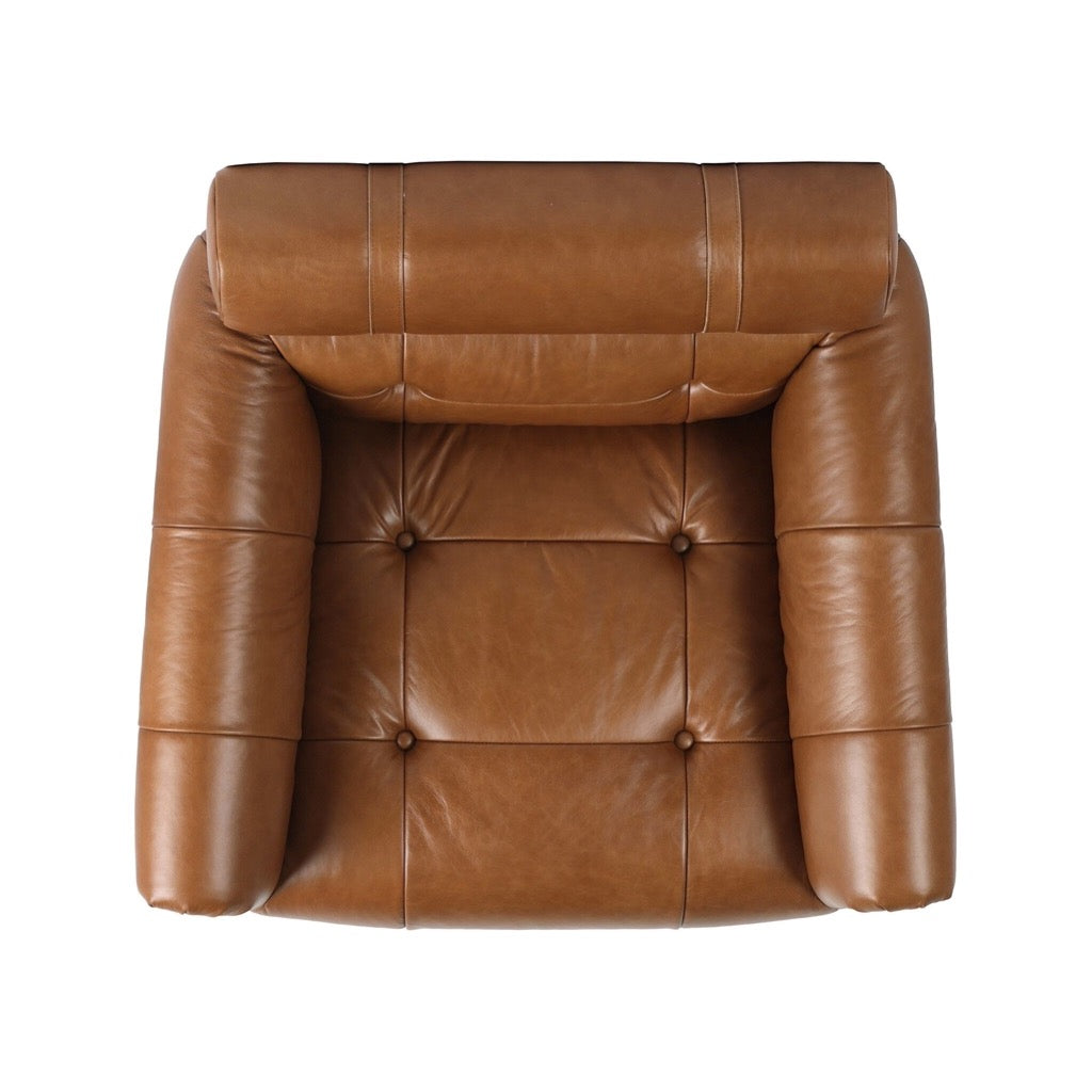 A detail-driven take on a refreshed leather armchair. Made from exclusive top-grain leather in a warm butterscotch, a fully tufted seat means maximum comfort, while solid ash framing and legs provide enduring support.