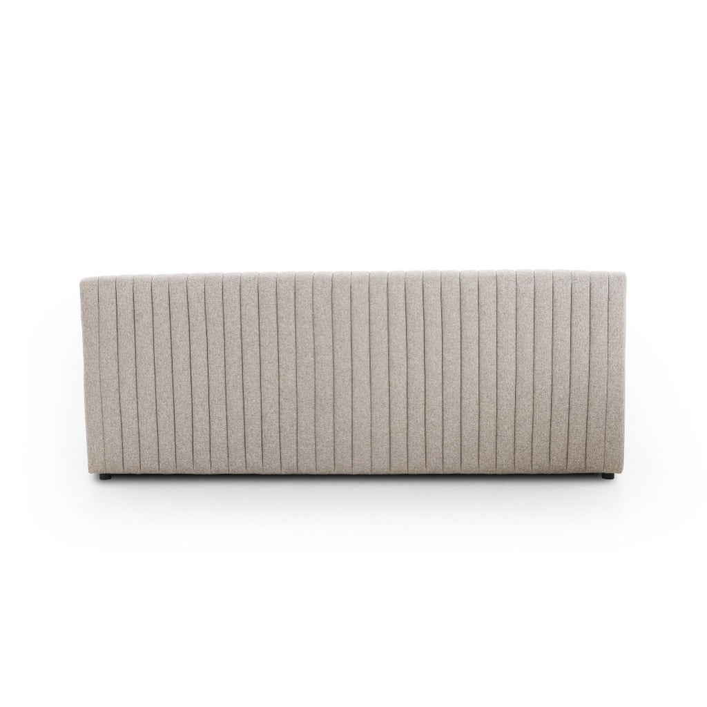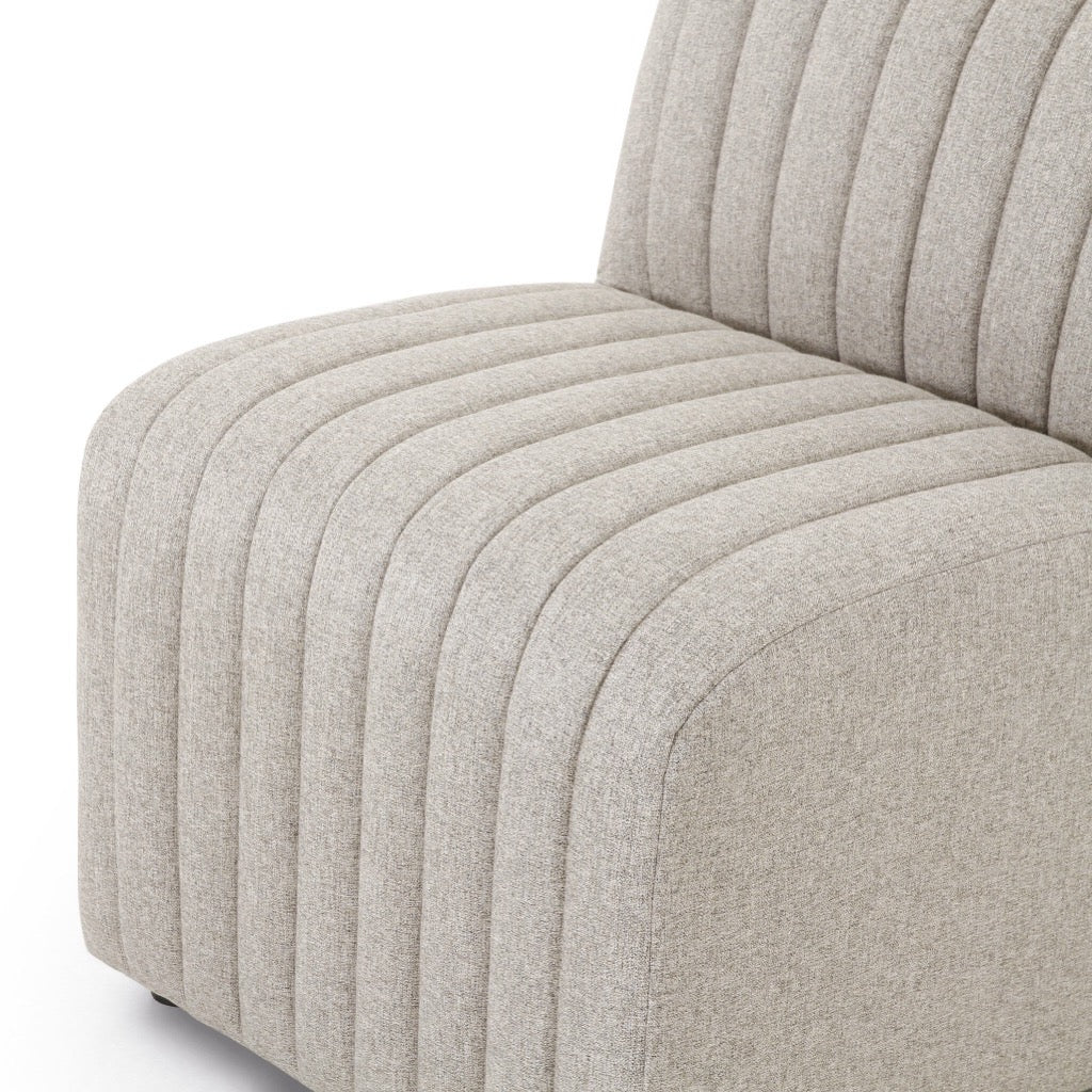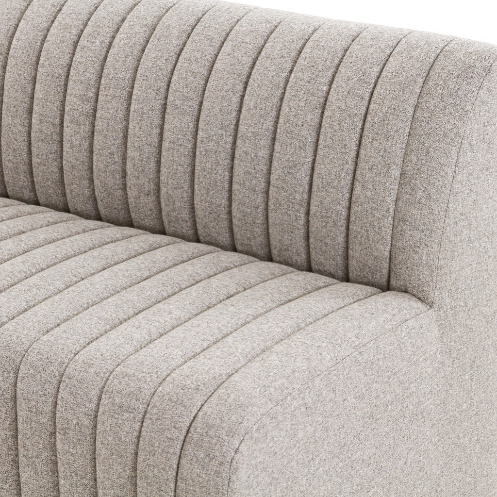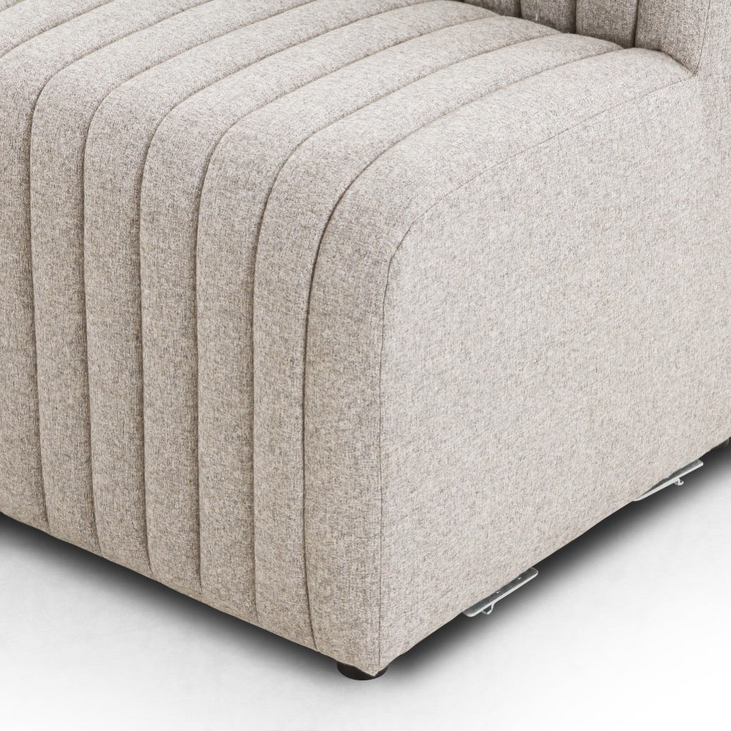 Modular seating in a versatile natural hue features dramatic channeling for trend-forward texture and sumptuous comfort.