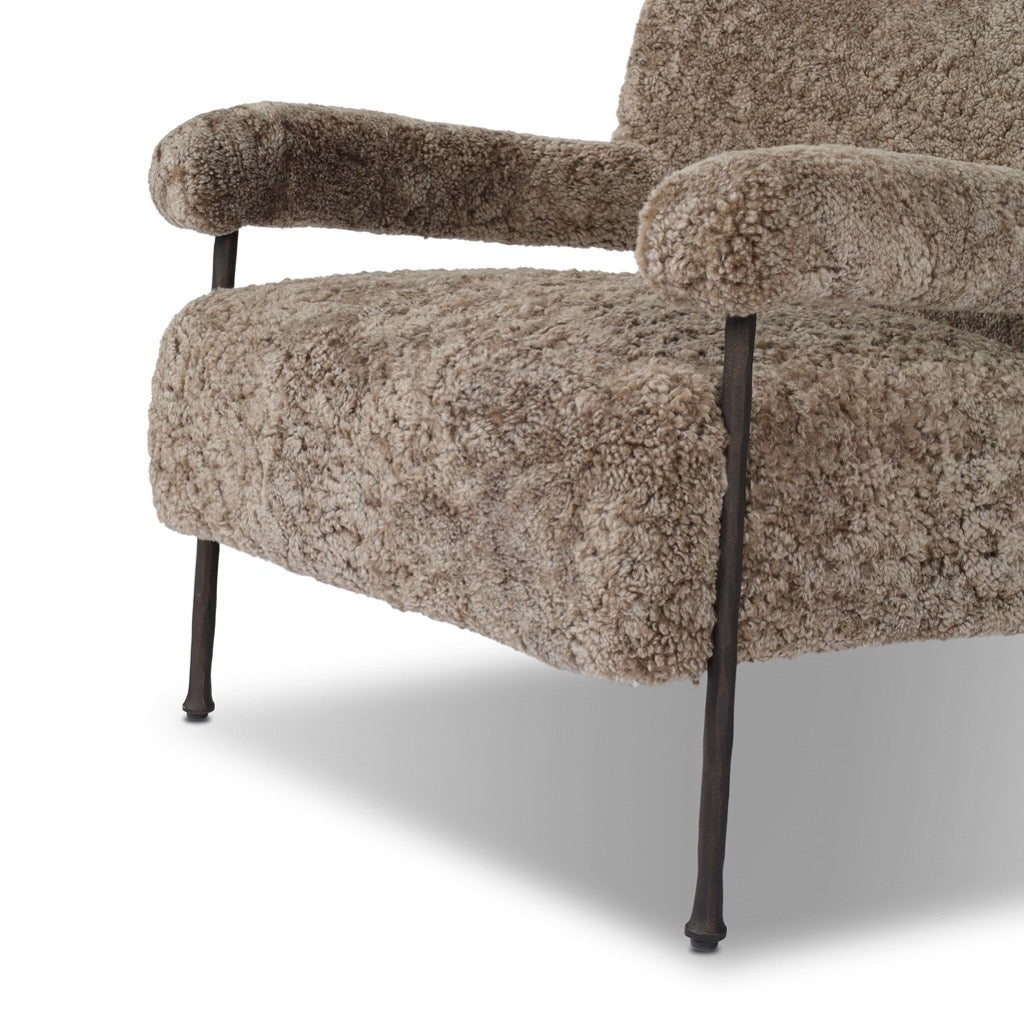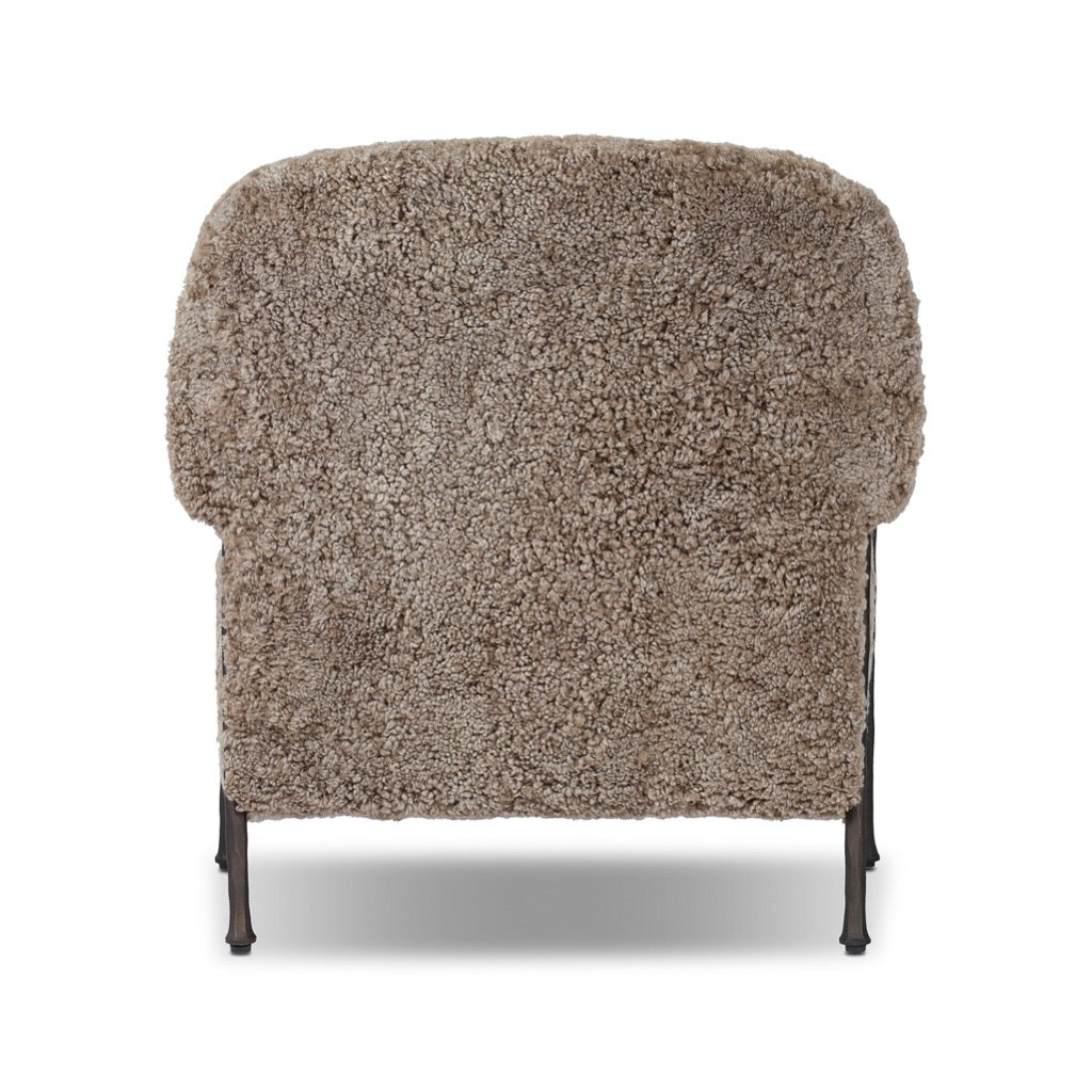 A curated seat with irresistible shearling and metal framing. An all-natural shearling blend fashions the bulk of this chair, crafted with a slim but strong iron frame.