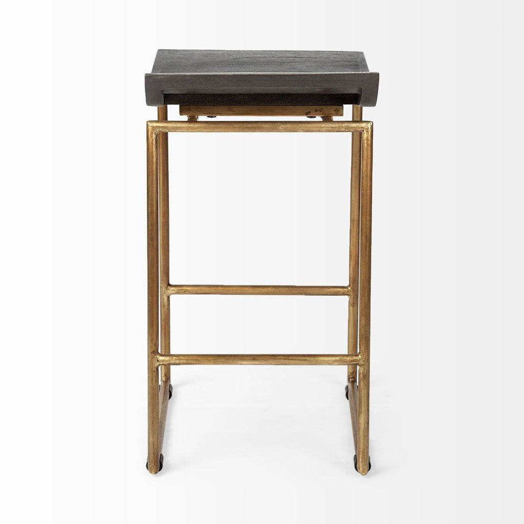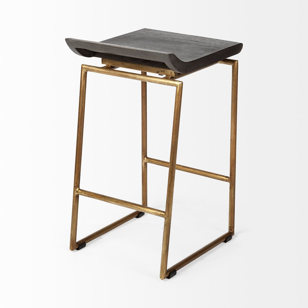 The Givens stool flaunts a dark brown toned wooden seat mounted on a sturdy metal frame.