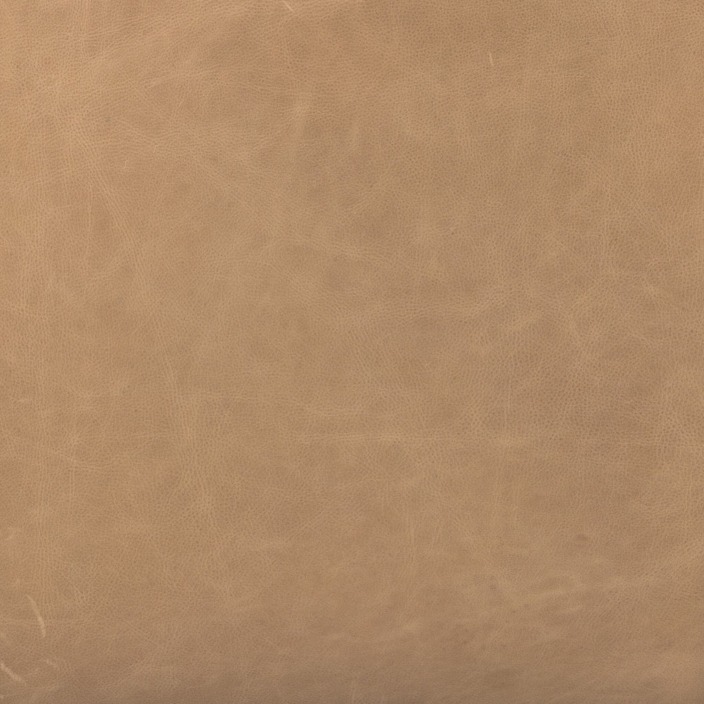 Midcentury vibes with a modern twist. Nude top-grain leather seating and stainless steel arms fuse for a light look with presence. A polished aluminum swivel base features casters and height adjustability for added ease.