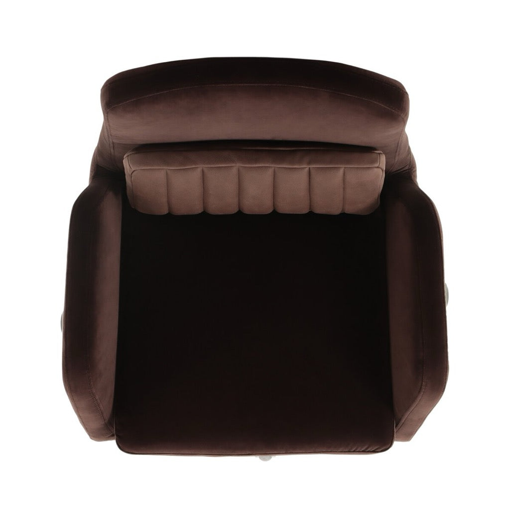 A warm Surrey Cocoa fabric lays a clean slate for this modern desk chair featuring a top-grain leather lumbar pillow for contrast and comfort. A height-adjustable swivel base plus casters add ease.