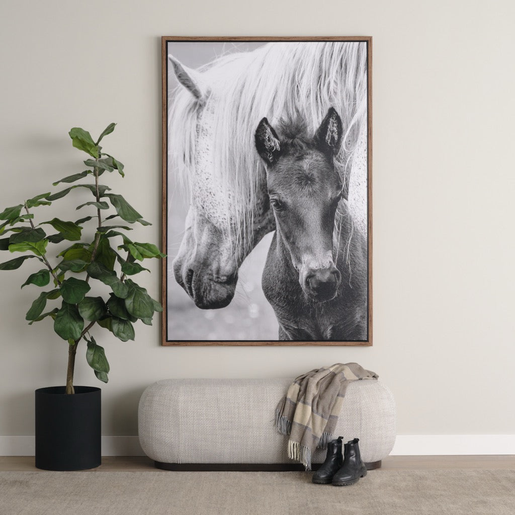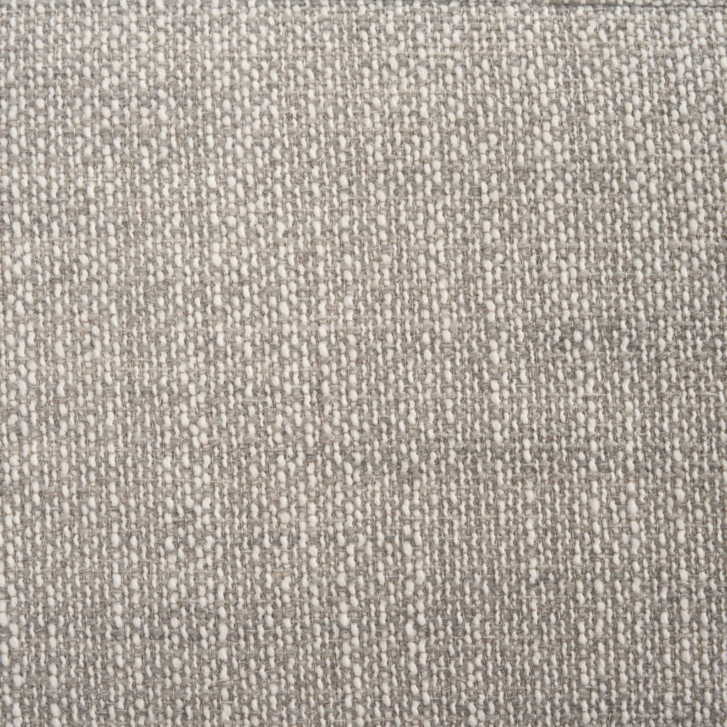 • Materials: Enveloped in a low pile boucle featuring woven blends of white gray and black, supported by a solid hackberry wood base. 100% Polyester.