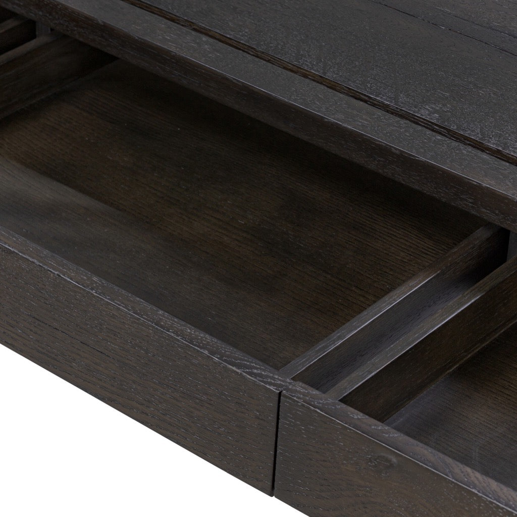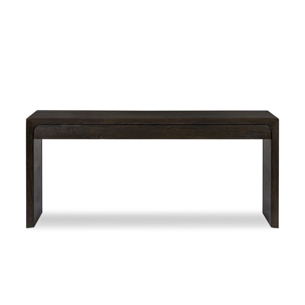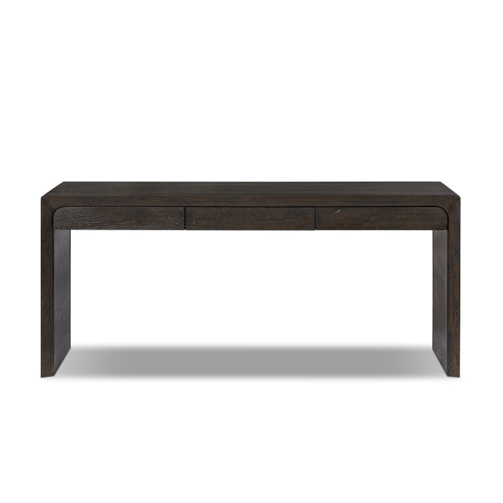Made from solid reclaimed oak finished in a rustic charcoal, this slim-profile desk shapes subtly curved corners, bringing a handcrafted look to a minimalist form. Designed in partnership with longtime Four Hands collaborator Thomas Bina and Brazilian designer Ronald Sasson.