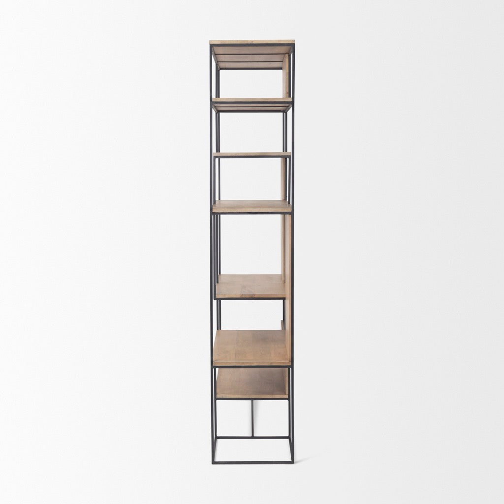 The spectacular Morris 6-Tier Shelving Unit is crafted from mango wood and iron metal. It features shelves of different sizes and heights creating a mix of open space shapes, all braced by a sturdy iron metal frame.