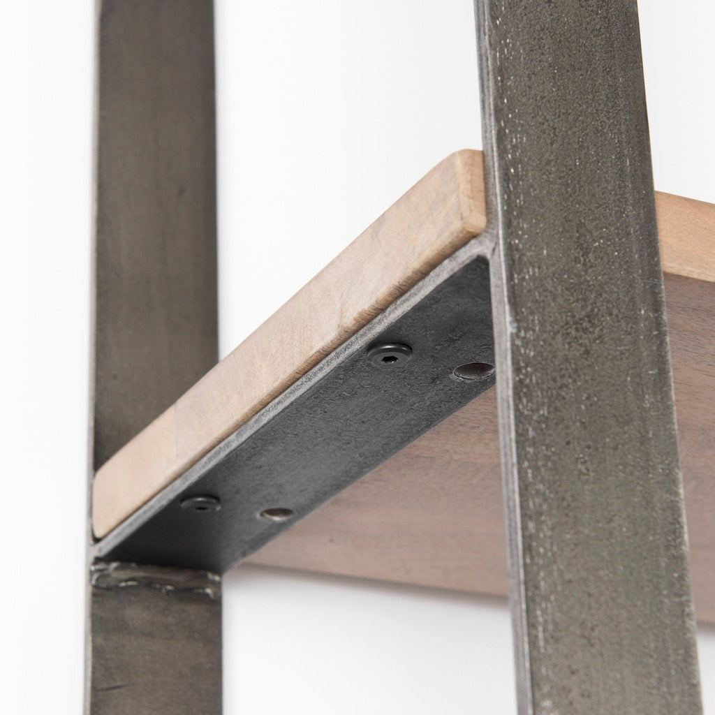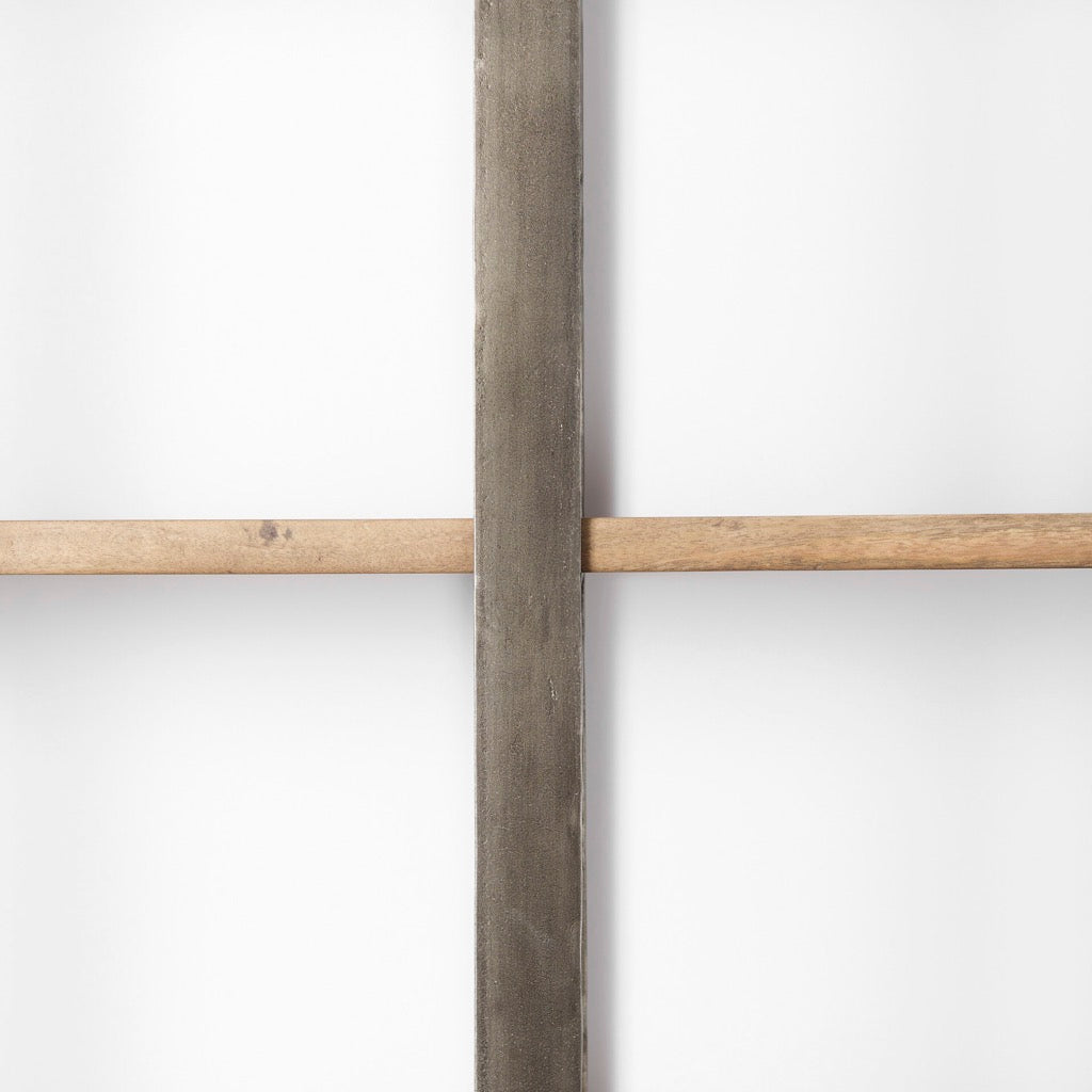 - Materials: Medium brown wood and metal frame with antique nickel finish