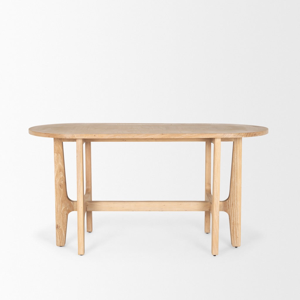 The Taylin Desk features a slender silhouette, constructed from elm wood and finished in a natural, light stain that has been gently white washed.