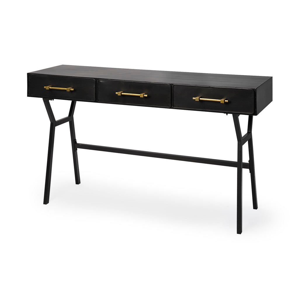 The Vince is a spectacular all-metal writing desk finished in a matte-black tone with gold accents.