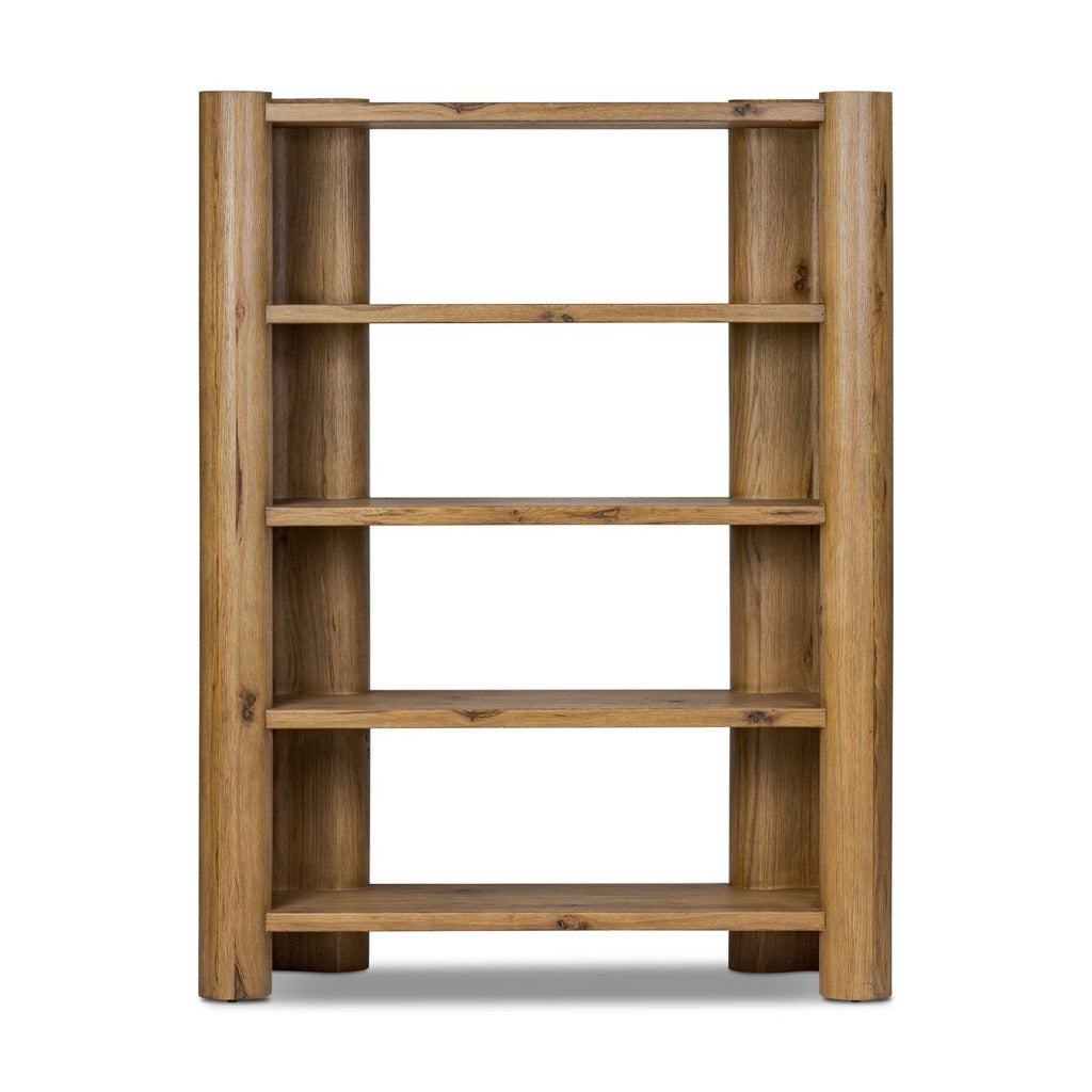Thick, curvy and rounded sides give this bookcase its playful character inspired by soft Brutalism. Made from light, solid oak, substantial shelving provides generous space for books, photos and keepsakes.