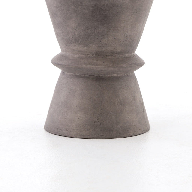 Smooth concrete is elegantly cinched into a modern hourglass shape. Safe indoors or out. Cover or store indoors during inclement weather or when not in use.