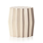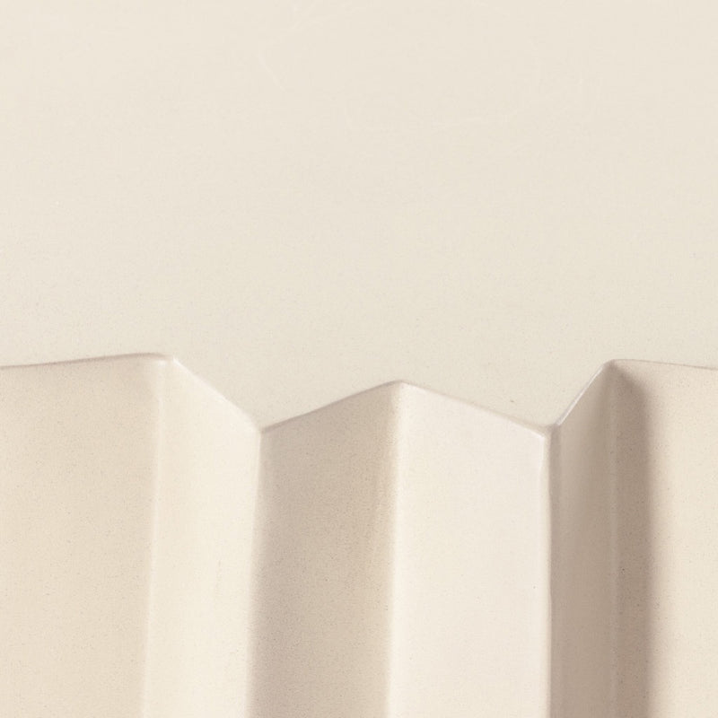 Sculptural modern, made for outdoors. Fluted edge detailing delivers intriguing depth to solid concrete finished in a stark white. Shapely tabletop brings an extra surface to any space, indoors or out. Cover or store inside during inclement weather and when not in use.