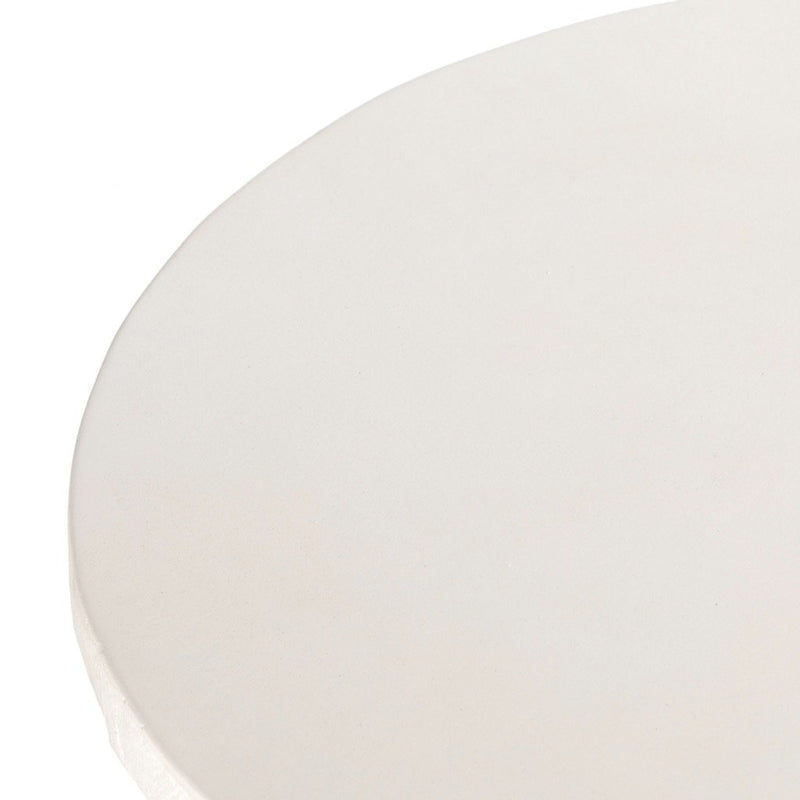 Make a monolithic statement. Made from plaster-molded concrete, a pedestal-style base supports a rounded tabletop of smooth, white-finished concrete, creating a clean, adobe-inspired vibe. Option to pair with matching High End Table for a staggered look.