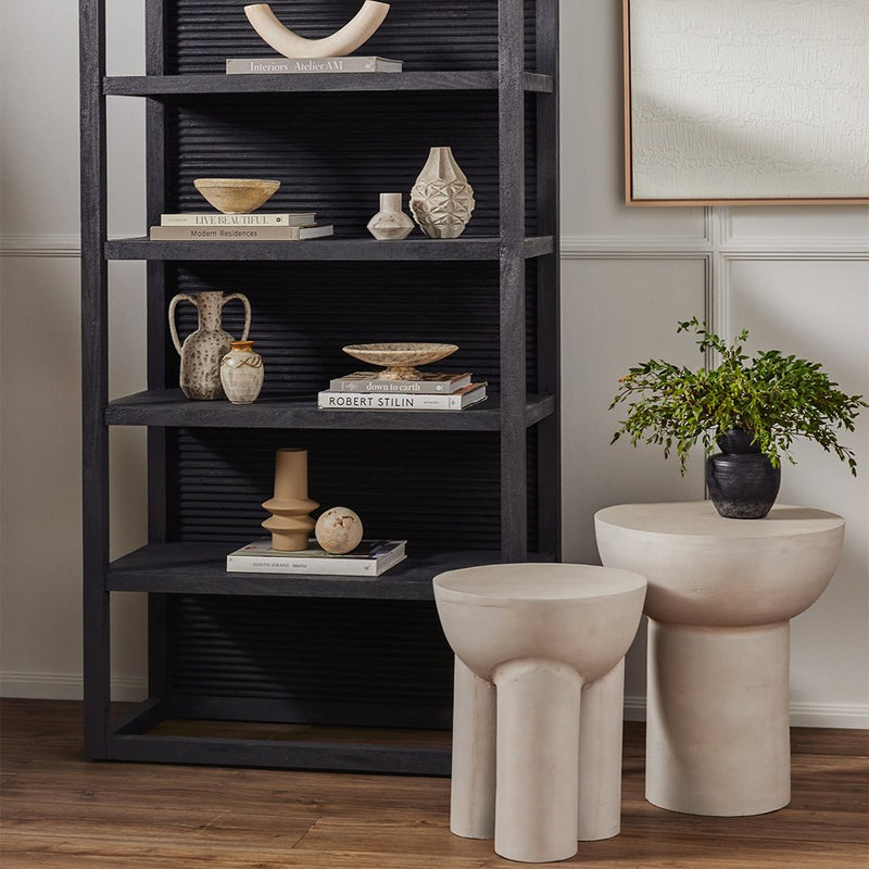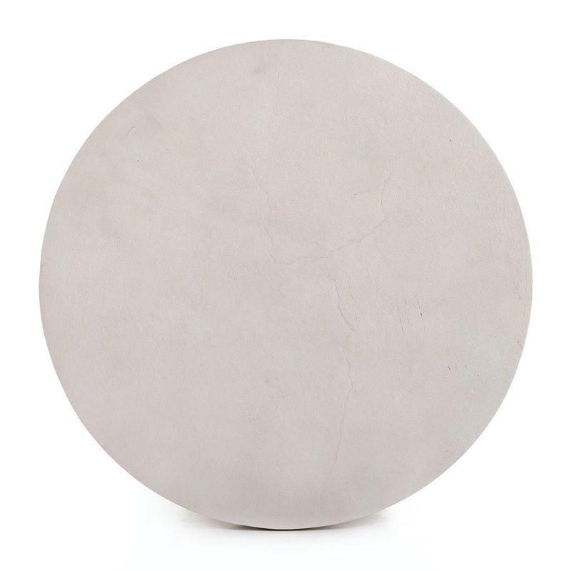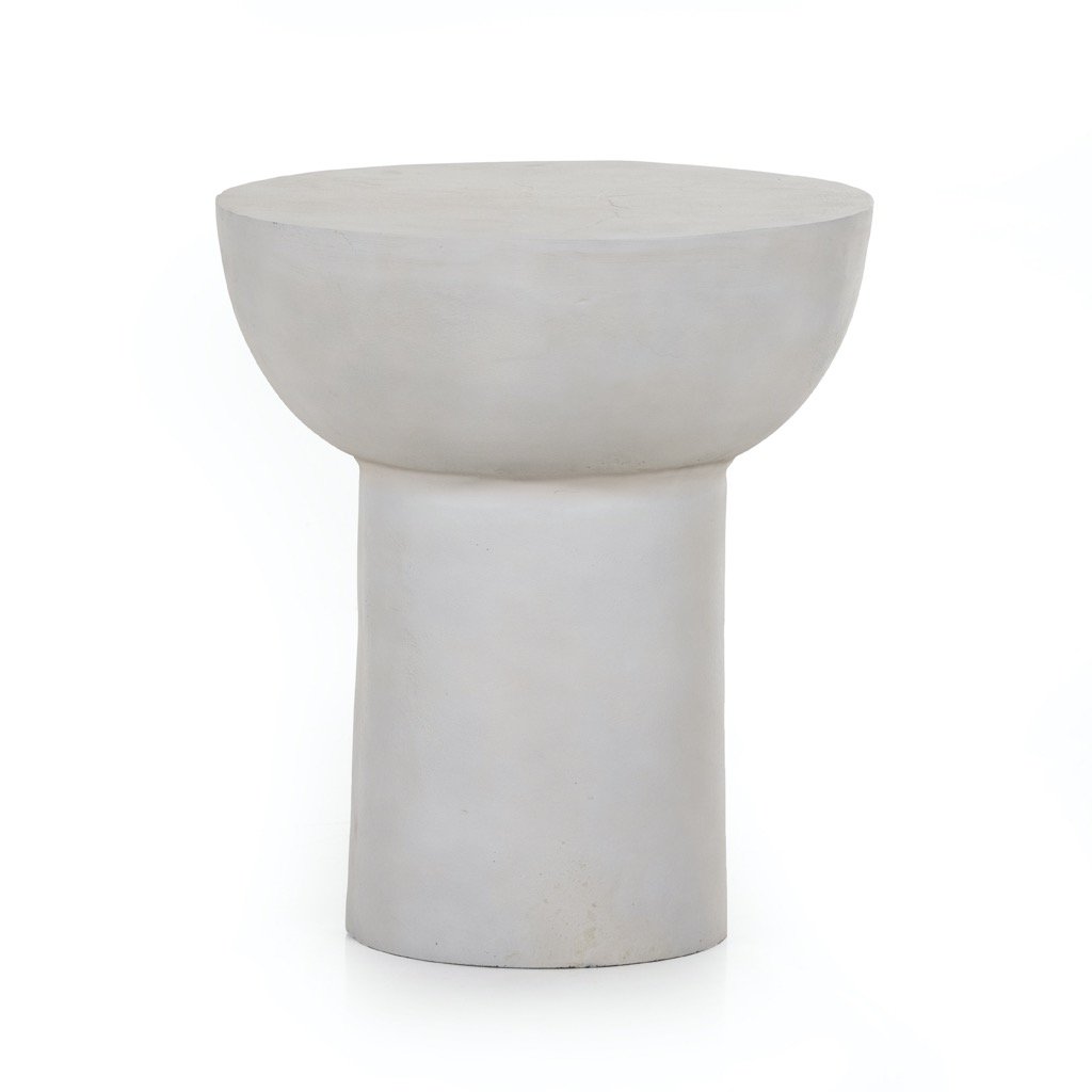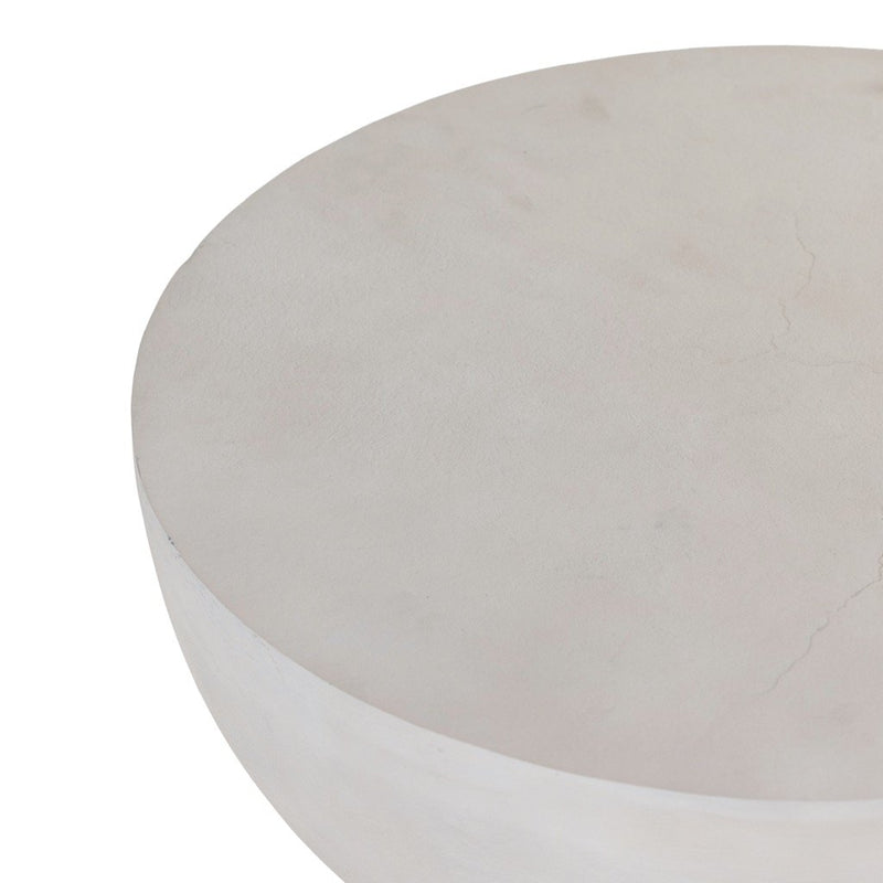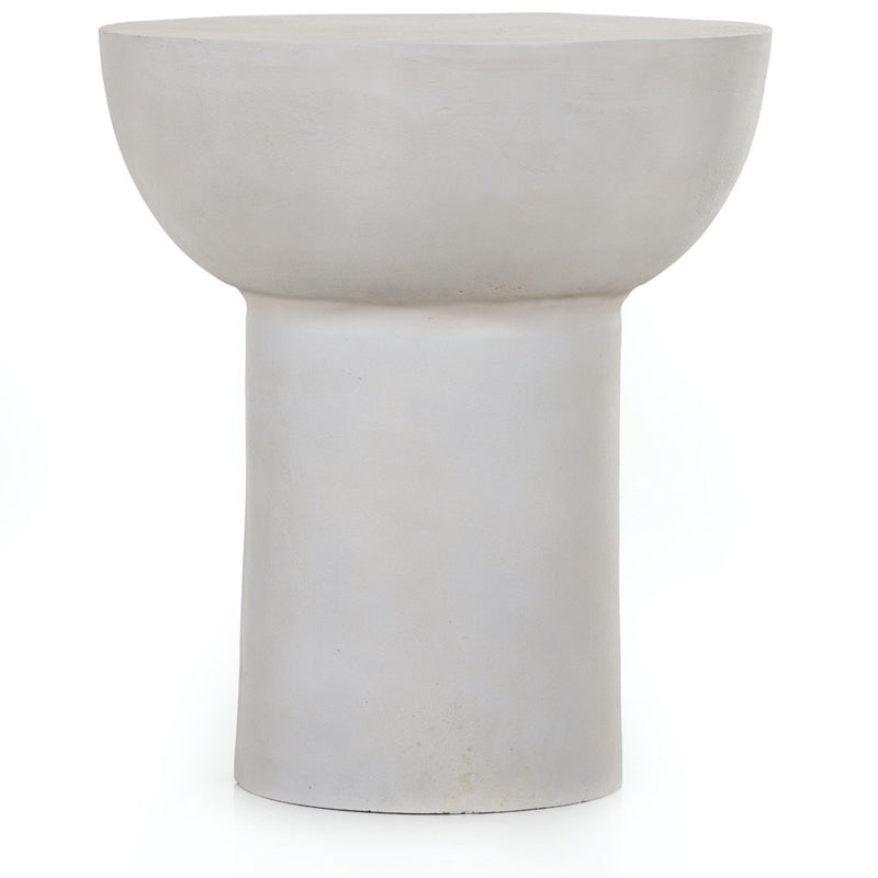 Finished in a textural matte white, a chunky aluminum end table presents the perfect place for keeping a favorite book or drink within reach. Surfaces may vary in texture and dimples, reflective of materials' organic roots.