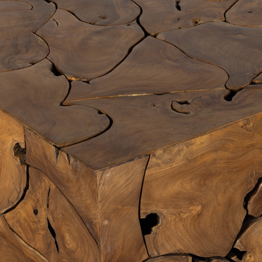 A unique layering piece — indoors or out. Made from laminated teak root with miter joinery, a simply shaped bunching table offers organic vibes and plenty of natural movement. Reflective of natural materials, tables will vary from piece to piece. Joint expansion may grow visible over time. Cover or store indoors during inclement weather and when not in use.