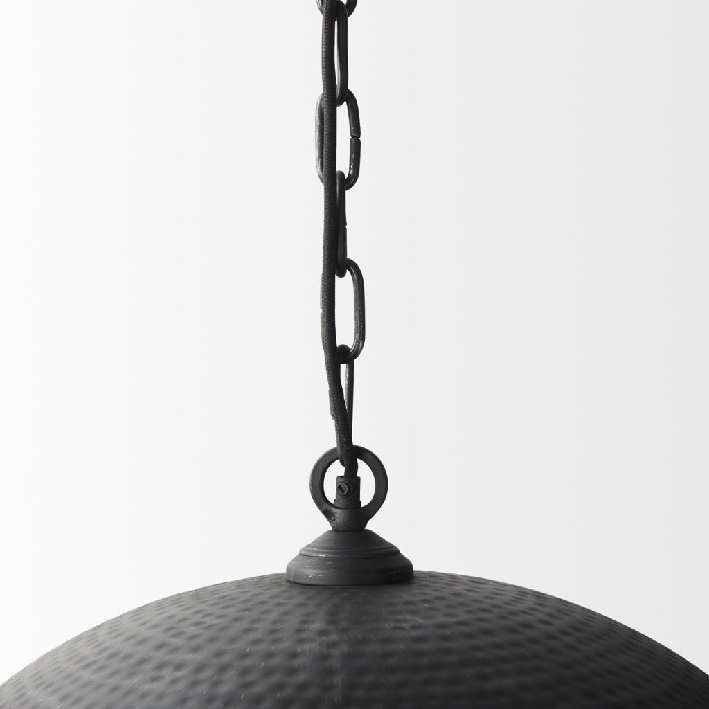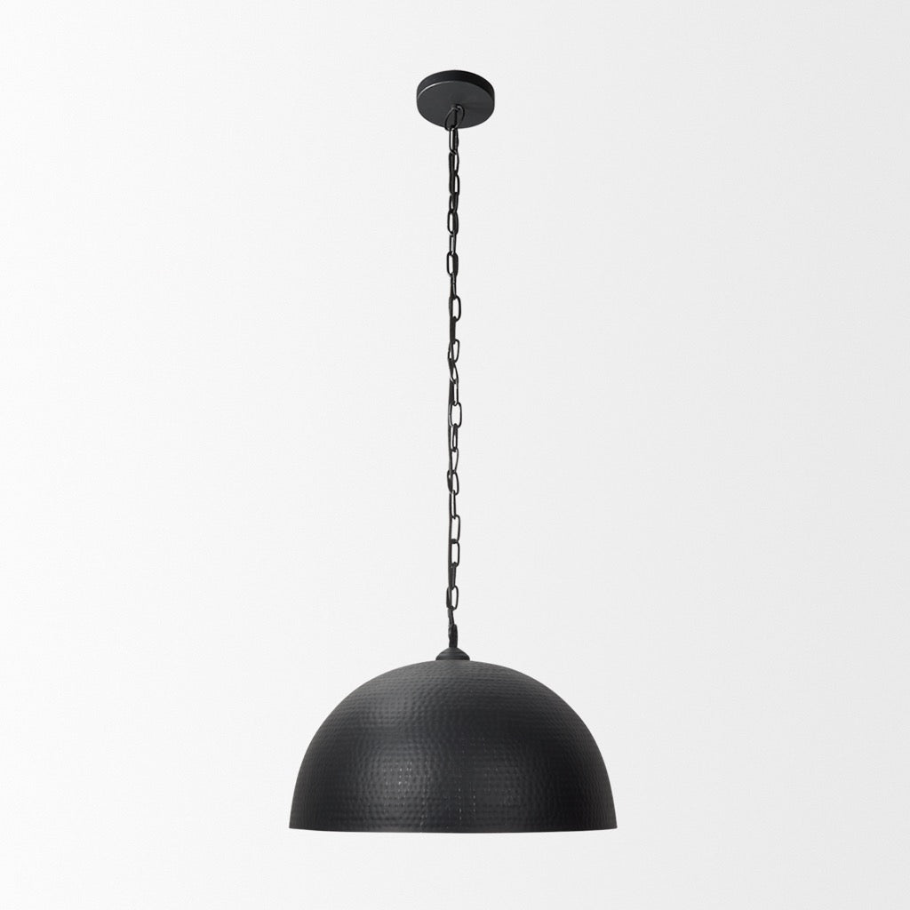 The Karina is a beautiful, hammered matte black domed pendant light that features a luxe, smooth gold-finished interior.