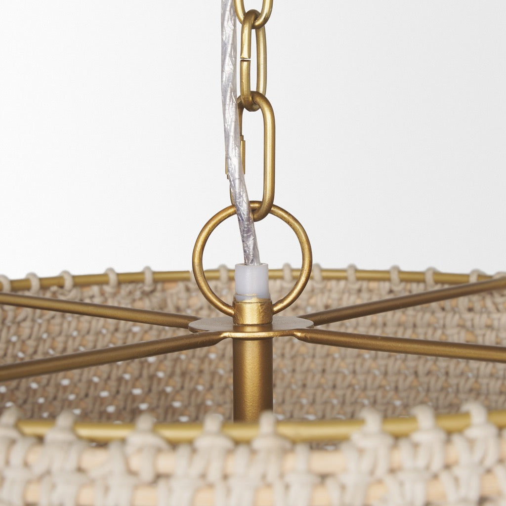 - Materials: Cotton woven rope shade with a gold-finished adjustable chain and matching canopy. Maximum overall hanging height is 84".