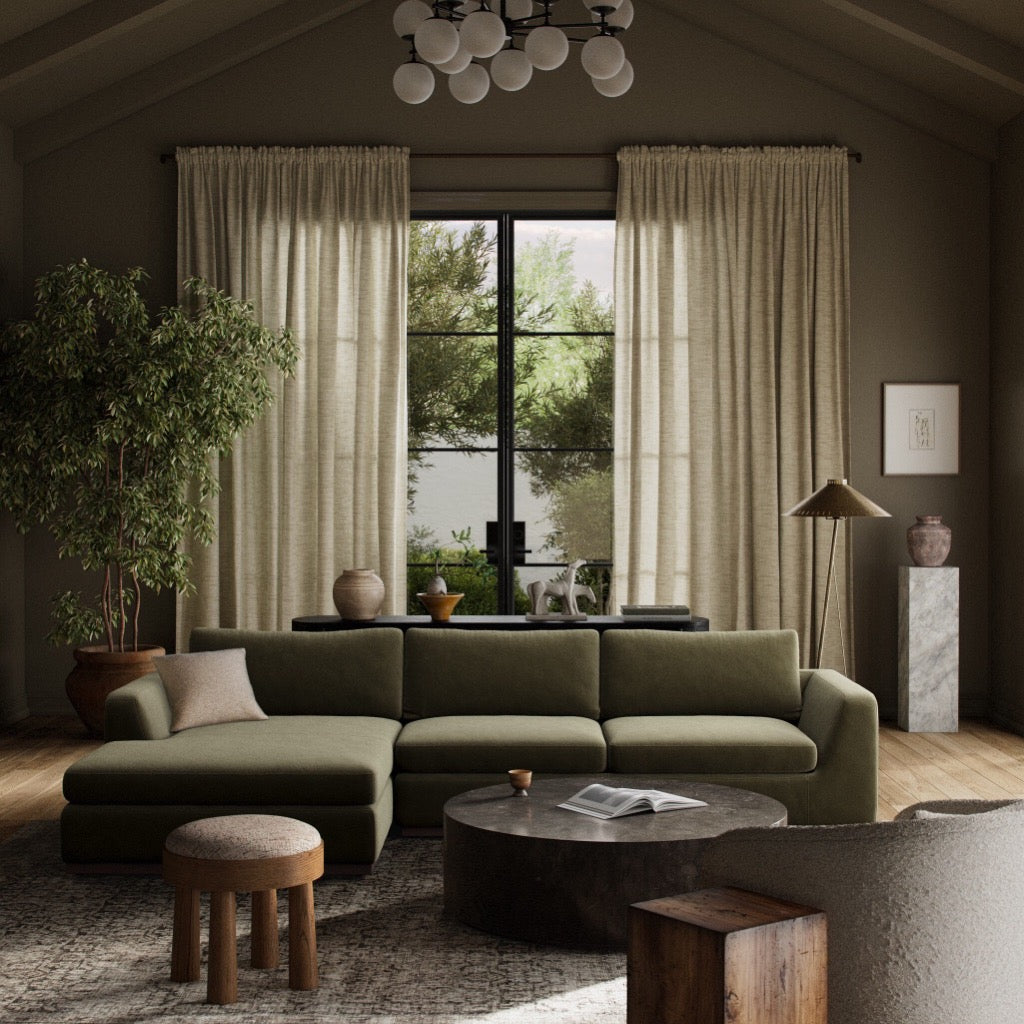 A simply styled two-piece sectional, perfect for everyday lounging. Due to the customized nature of made-to-order pieces, no cancellations or returns are accepted.