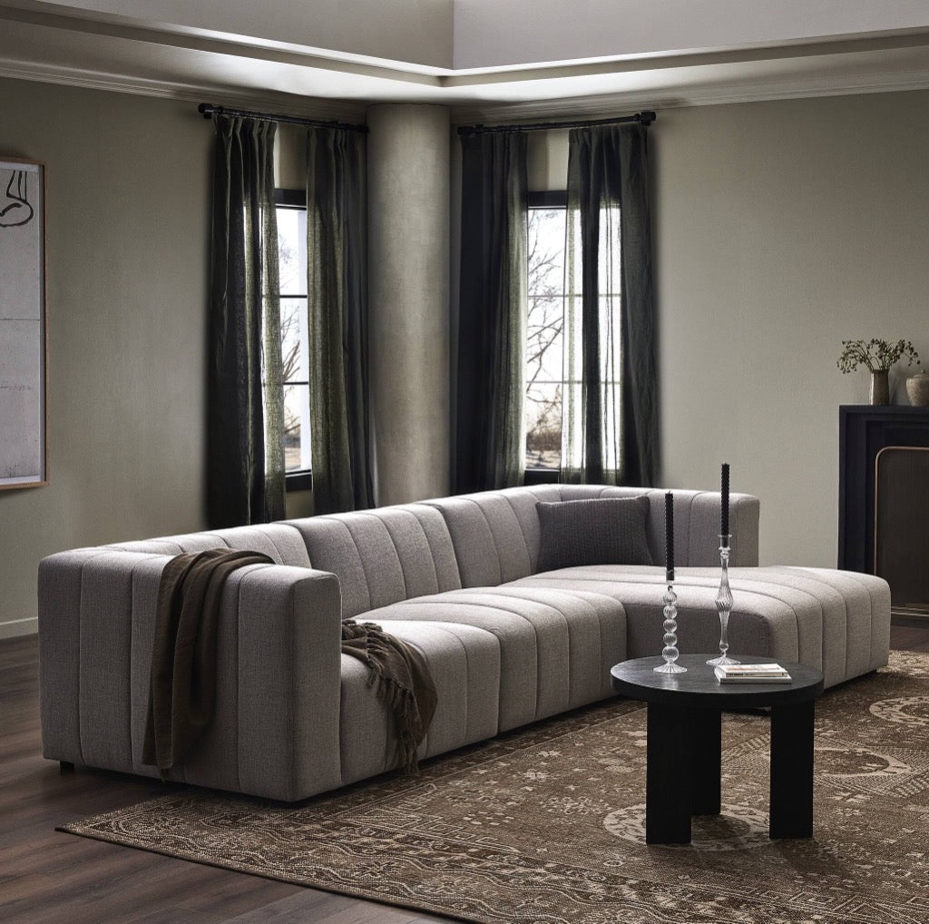 Wide, vertical channels and low styling speaks to modish Italian influence. Wide, vertical channeling brings a textural sense to sandstone-colored covering. Performance fabrics are specially created to withstand spills, stains, high traffic and wear, ensuring long-term comfort and unmatched durability.