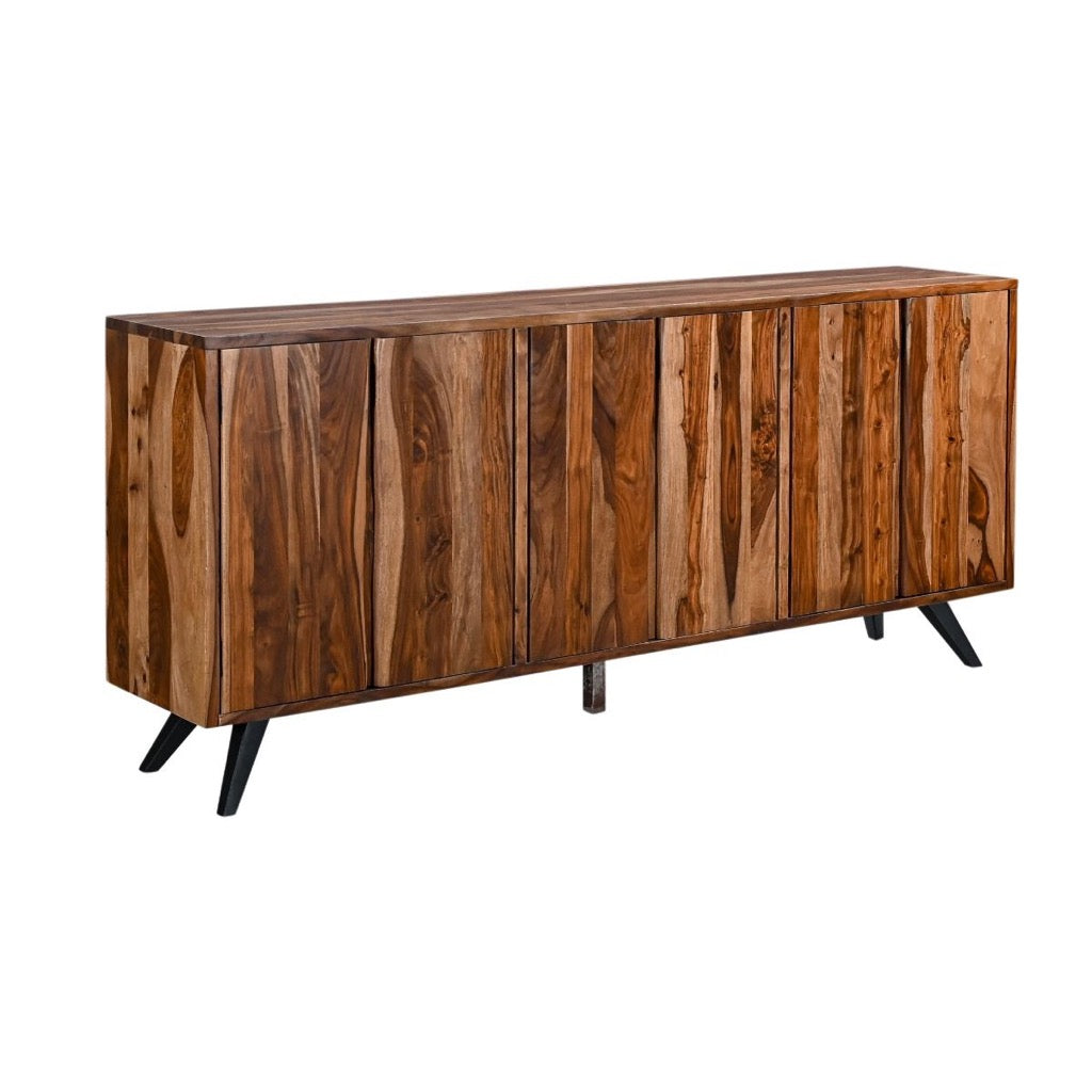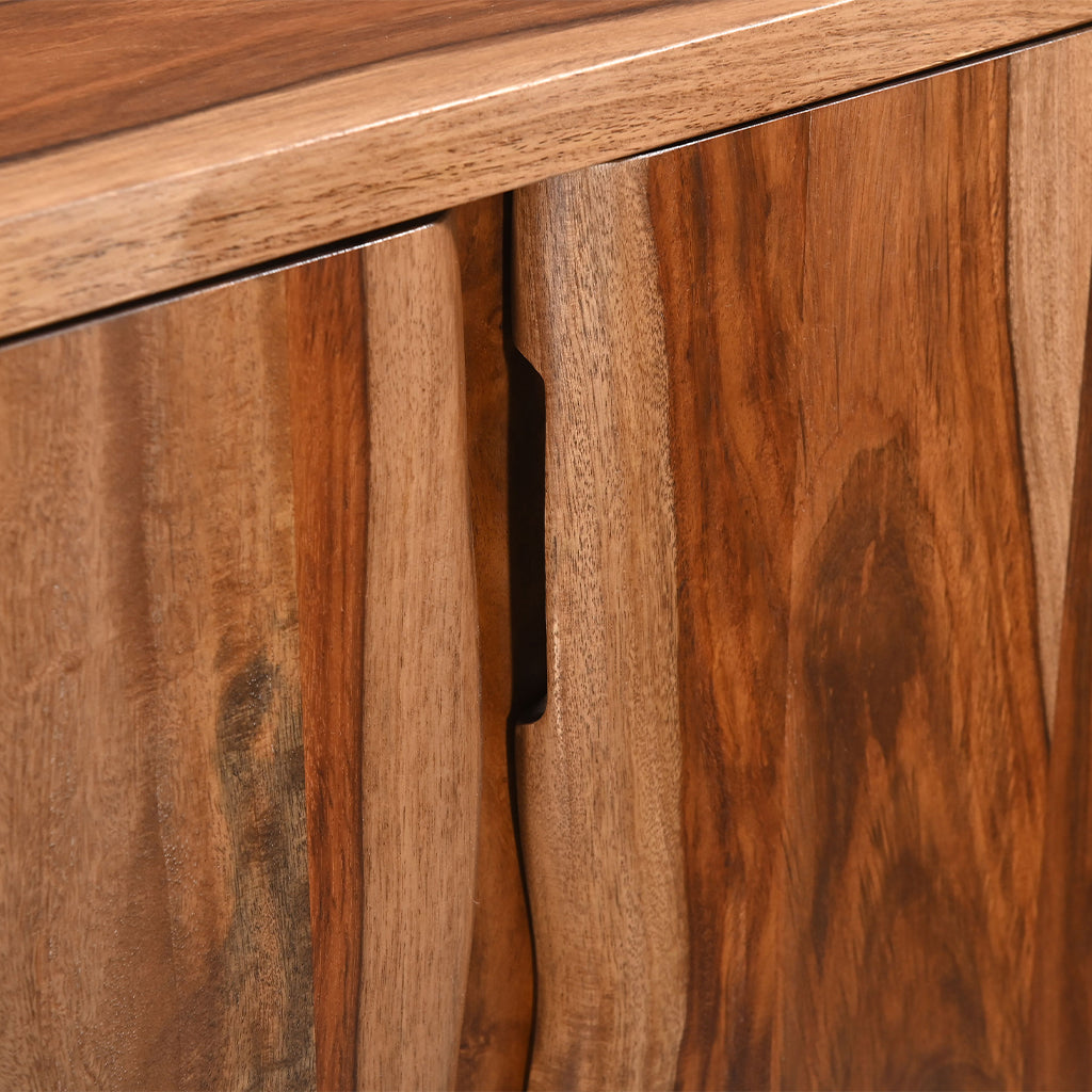 Explore the Austin Loft Sideboard in Natural Sheesham, featuring a striking faux live edge. Made from sustainable solid wood, its rich, warm hues and distinctive grain patterns bring a touch of natural elegance and timeless character to your home.
