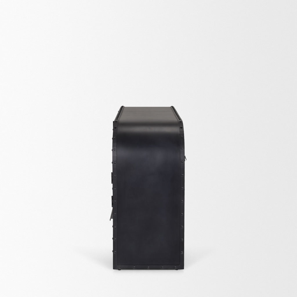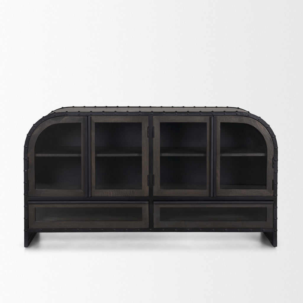 - Sturdy Metal and Wood Body: The Gehry is expertly crafted from dark brown polished metal and with mango wood accents on the door fronts.