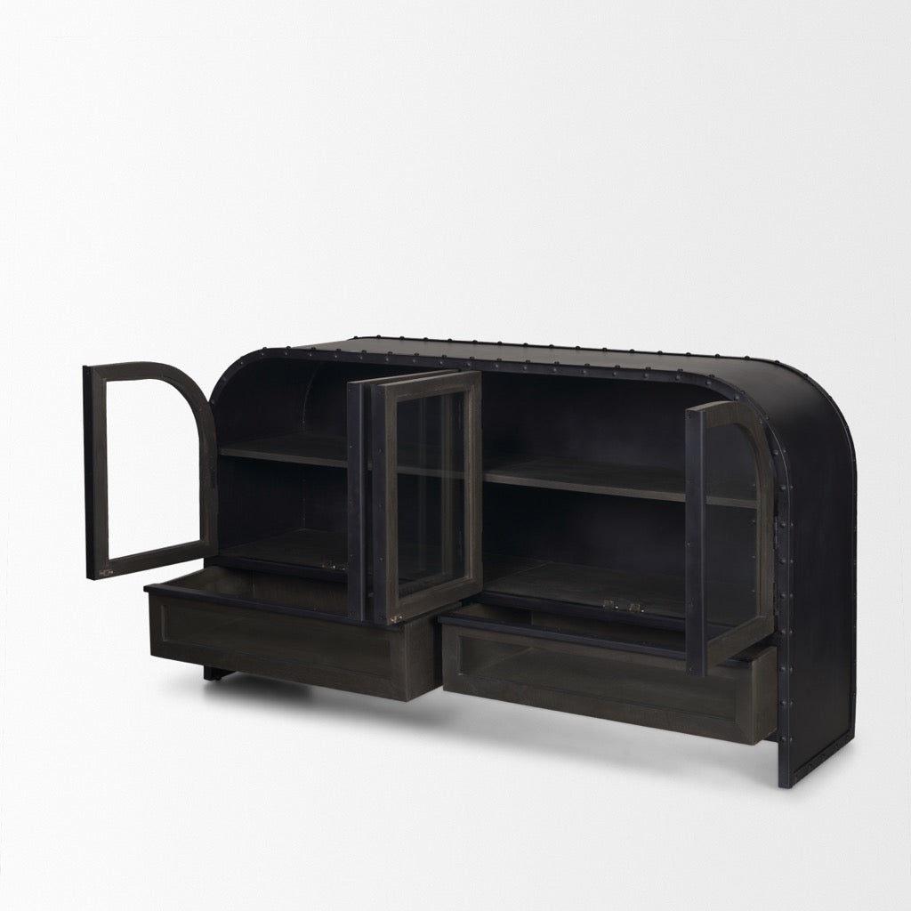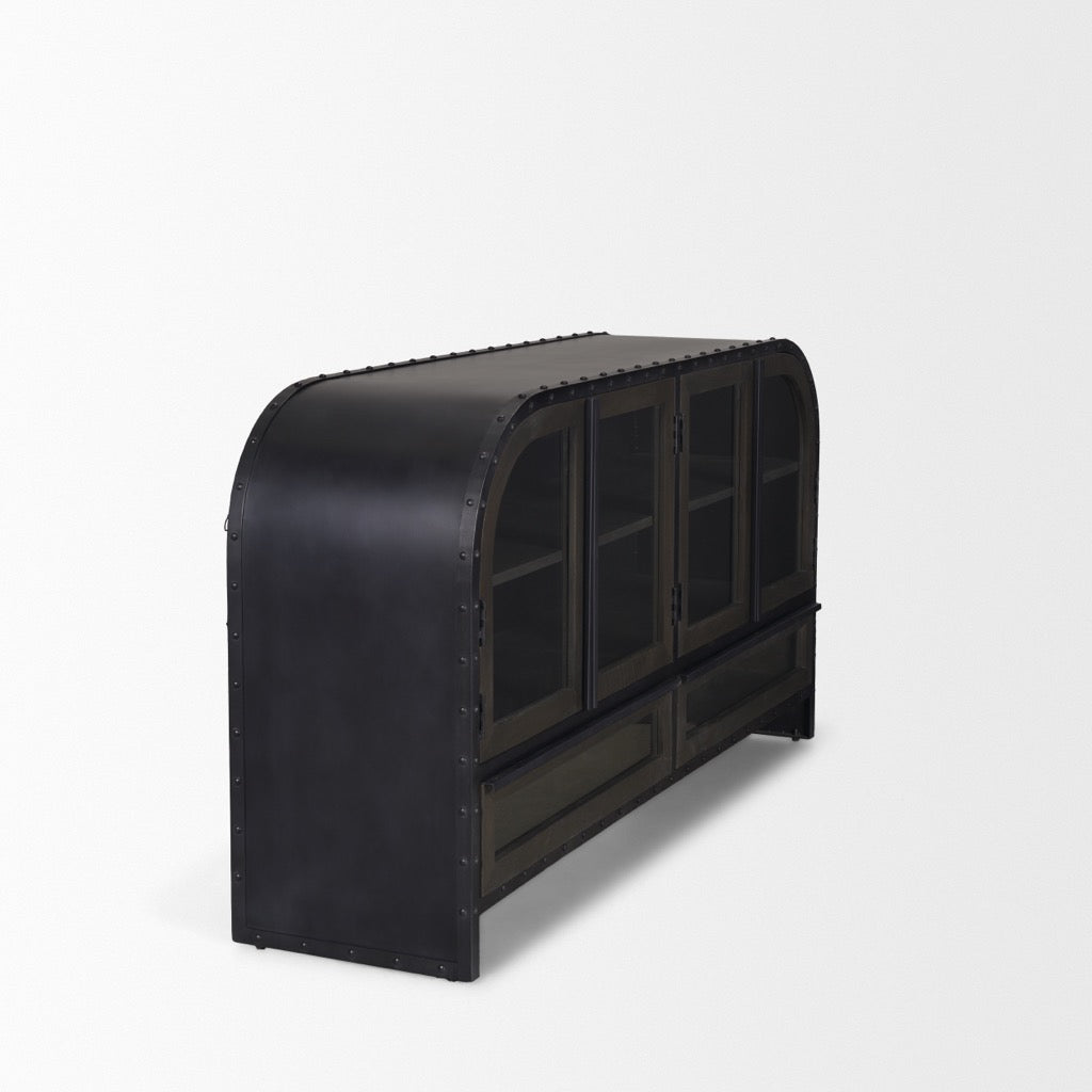 - Glass-Lined Doors: In addition to the spectacular finish and sturdy construction, the Gehry also flaunts glass-lined door fronts that make it a great piece to showcase your favorite accessories, decor and more.