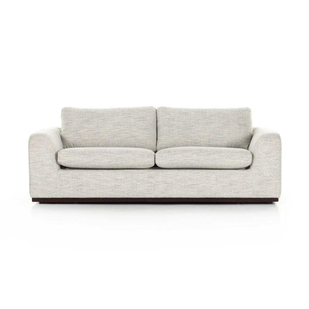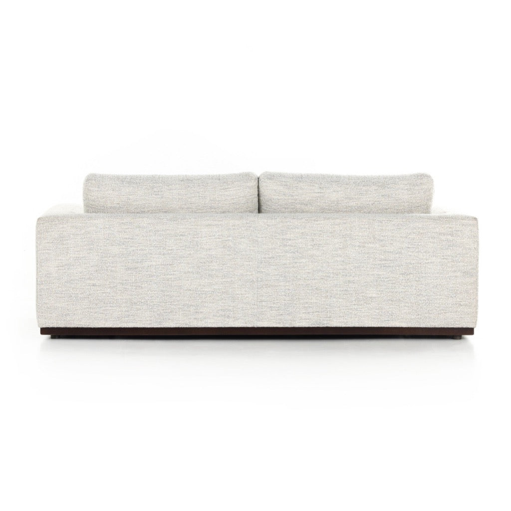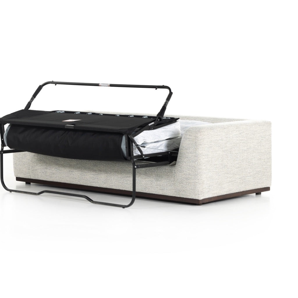 Simply styled with a convenient Queen-size pullout bed for guests. A soft cotton, boucle-yarn covering is made for comfort, with subtly flared sides for shapely effect, all grounded by a wrapped plinth base. Performance fabrics withstand spills, stains, high traffic and wear, ensuring long-term comfort and unmatched durability.