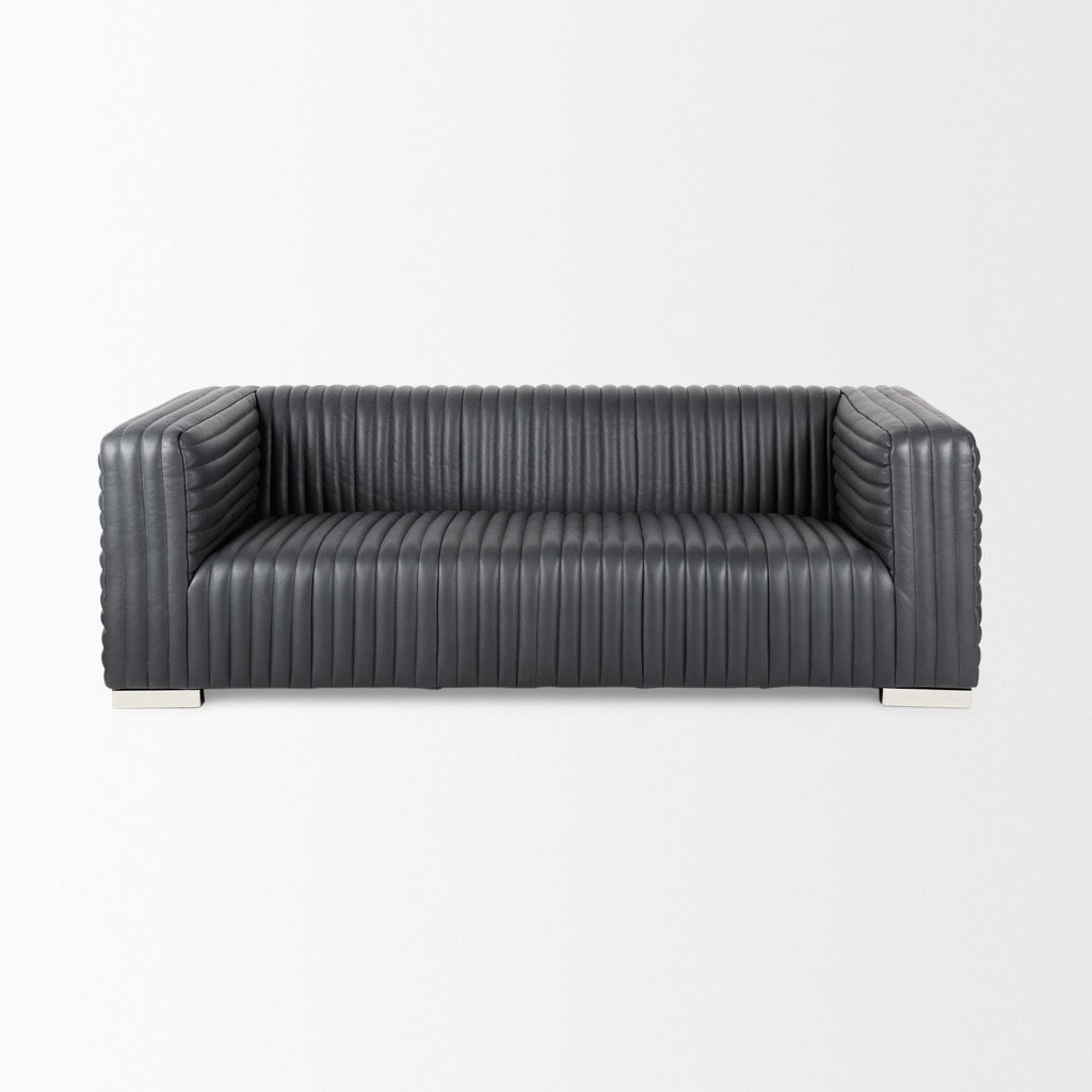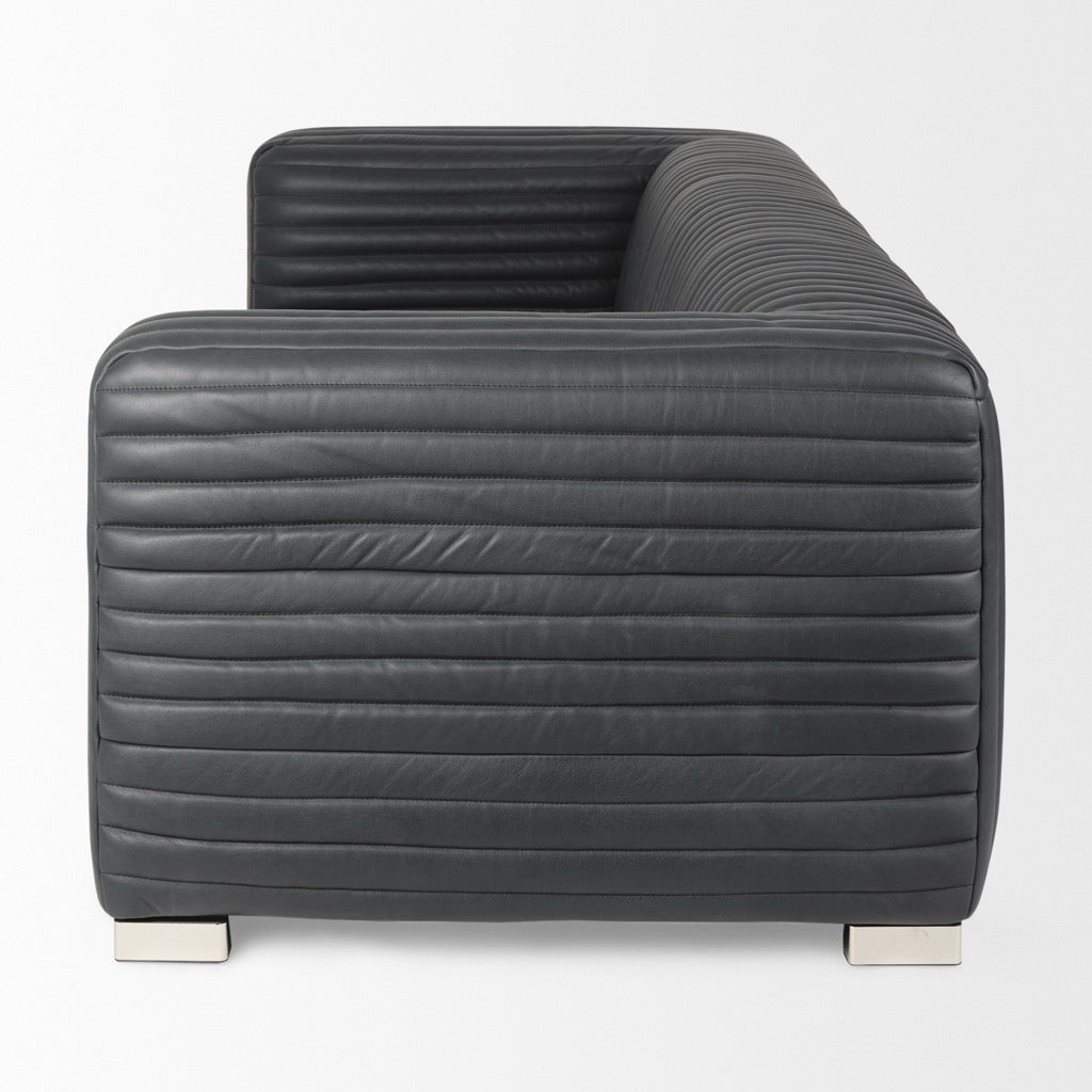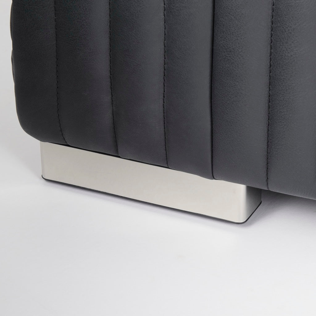 The Ricciardo features cushy channels of deep black top-grain leather that lines the entire length of this sofa and is supported by sleek, low-profile chrome feet.