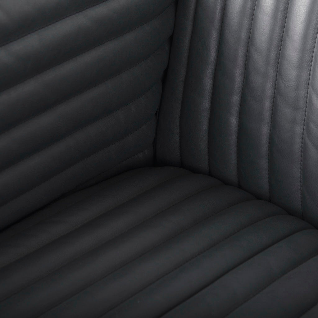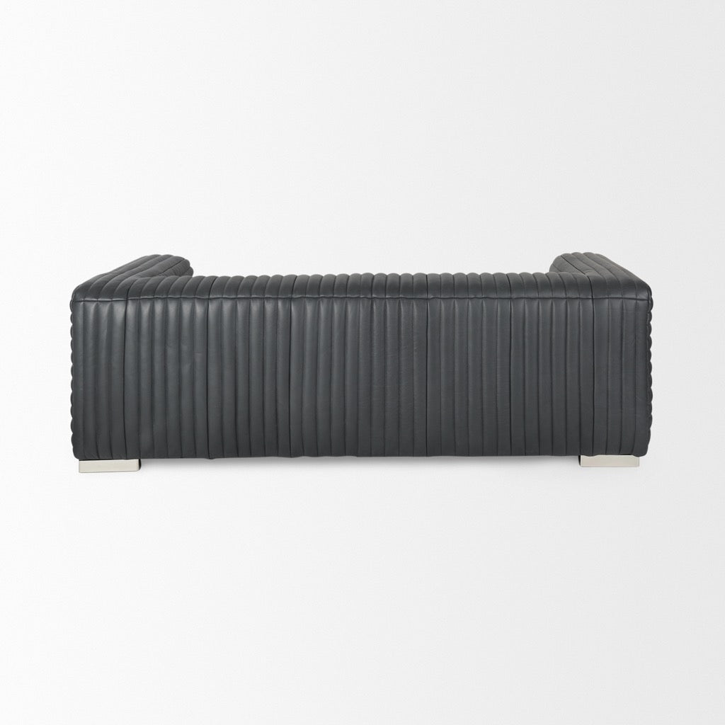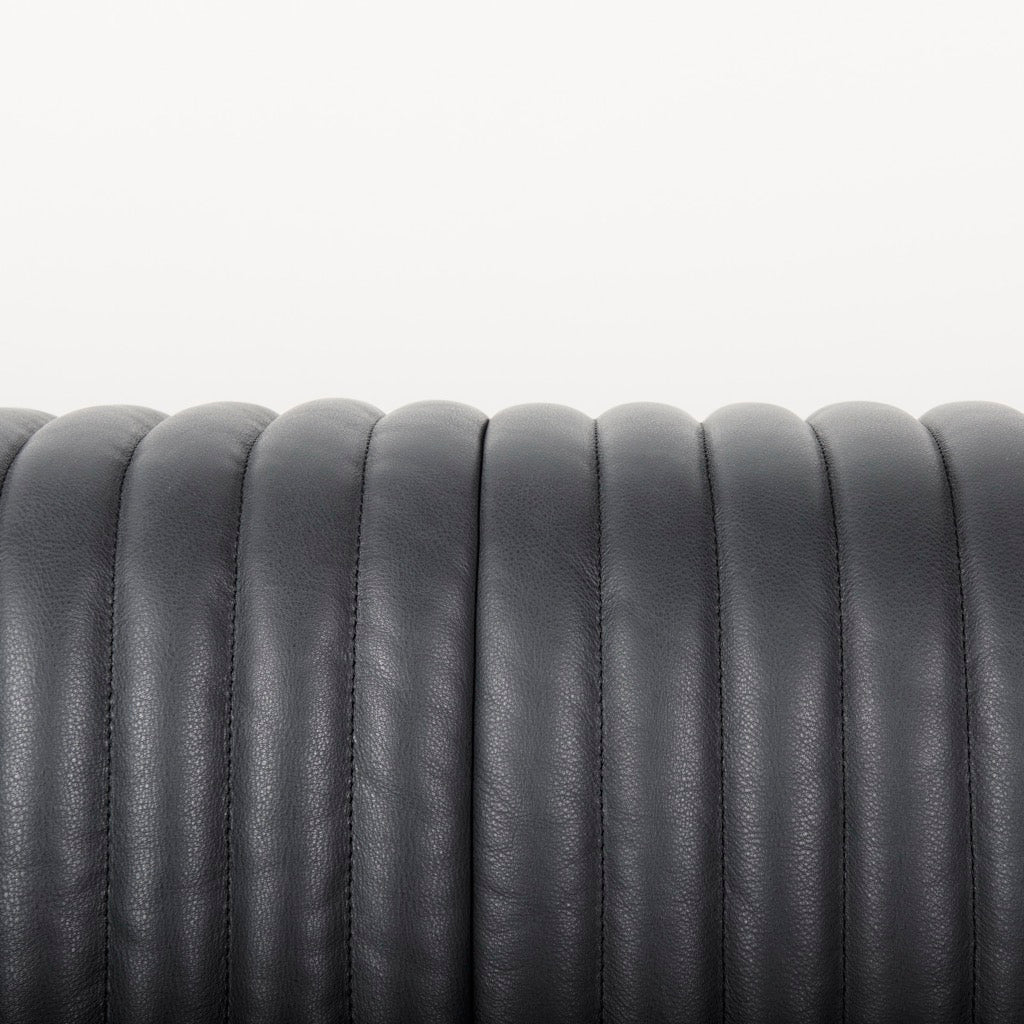 The Ricciardo features cushy channels of deep black top-grain leather that lines the entire length of this sofa and is supported by sleek, low-profile chrome feet.