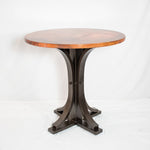 We have modified our most popular Vestal table to a bar height for the cocktail environment and added a beautiful Gold Vein powder-coat finish to the base. The perfectly balanced Vestal design is crafted in iron by hand and locally powder-coated for a very lustrous and durable finish. Paired here with a "Natural w/ Spots" copper tabletop to complete a beautiful bar table option for your home, restaurant or lounge.