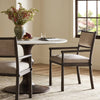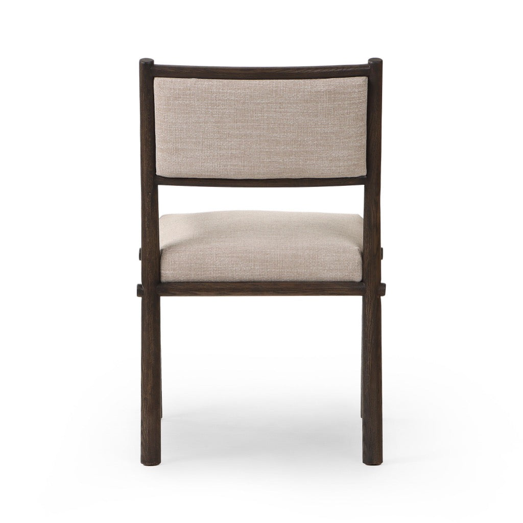 Rich, warm oak forms a simple frame for light, neutral fabric. The result: a dining armchair that feels traditional and to the point. Legs extend beyond the seat base, creating an interesting joint and connection detail. The frame's slight taper and curve give a softer, updated look.