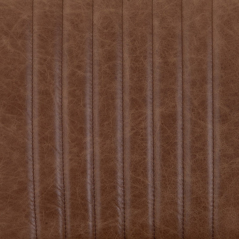 Vertical channeling and chestnut top-grain leather exclusive to Four Hands grant this '50s-inspired dining chair new energy. Finished in a rich brown, beech wood framing features a rear scalloped stretcher for added intrigue.