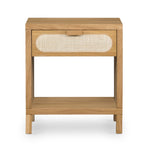 Au naturale. A nightstand of honey-finished oak features a single drawer with a wood-backed cane front, for a soft, neutral look with lasting modernity. Perfectly pairs with matching bed and dresser.