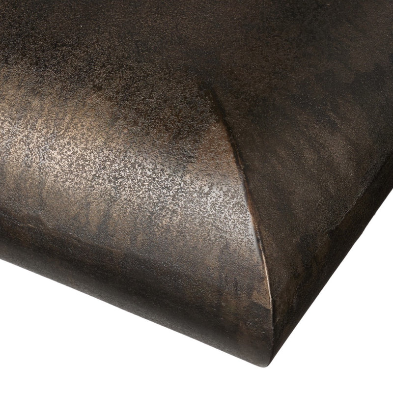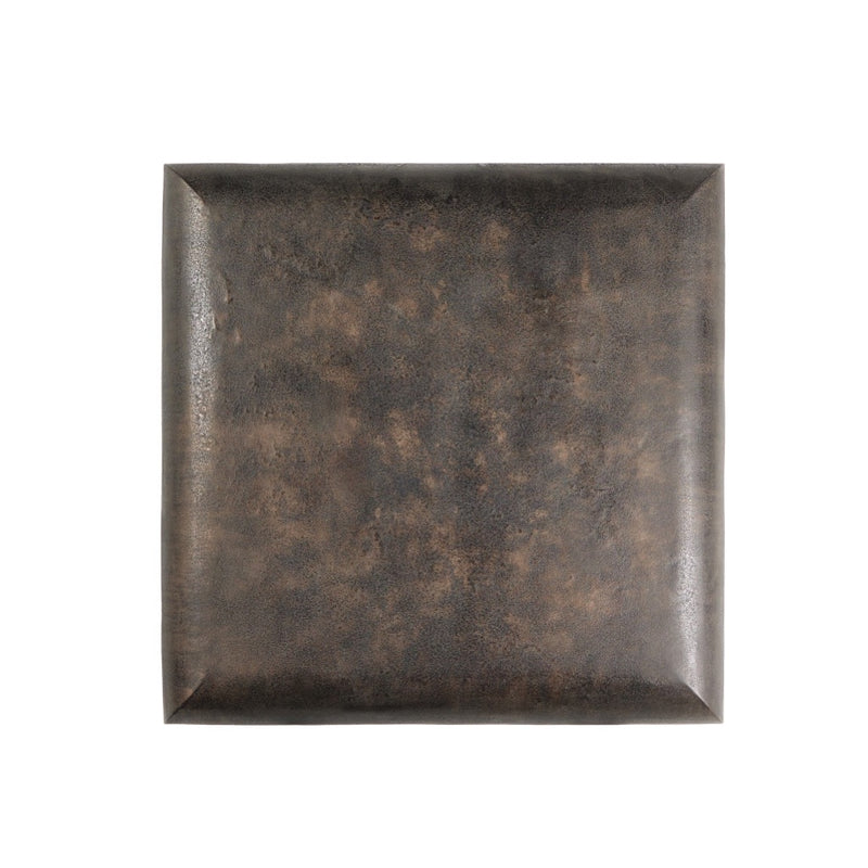 Finished in a distressed bronze with beautiful high and lows, cast aluminum shapes a softened square atop a plinth base — the perfect centerpiece for outdoor gatherings.