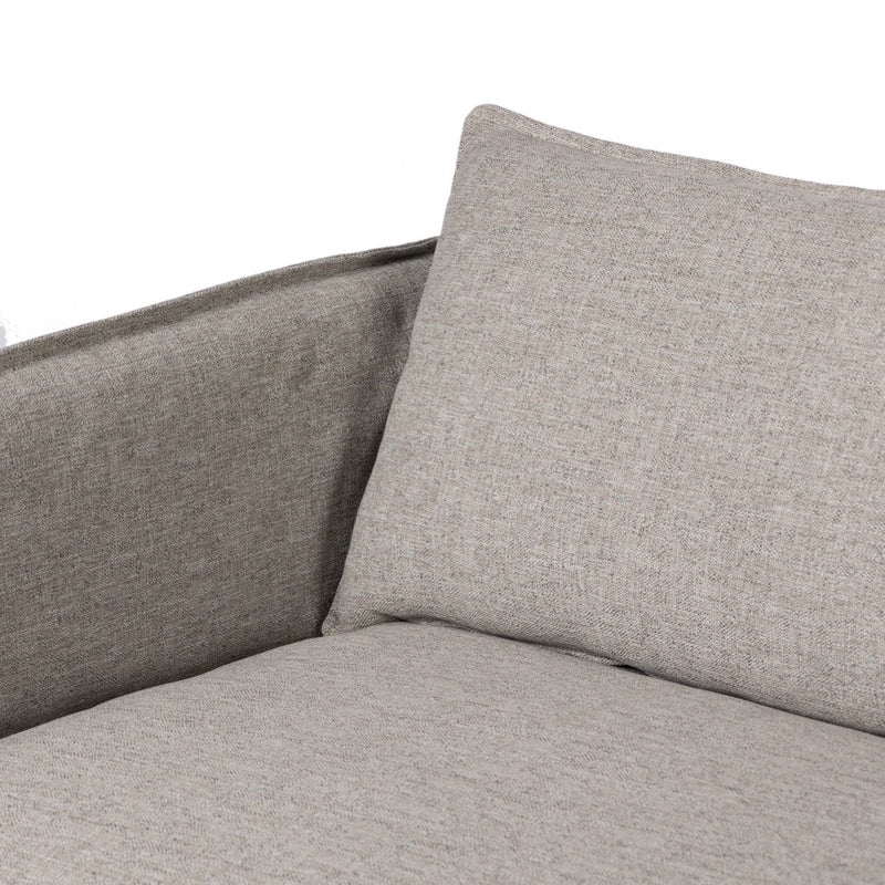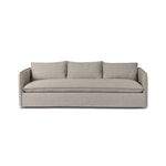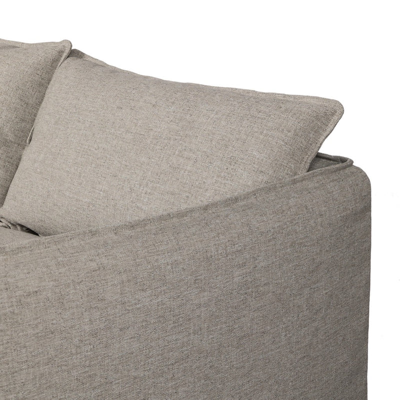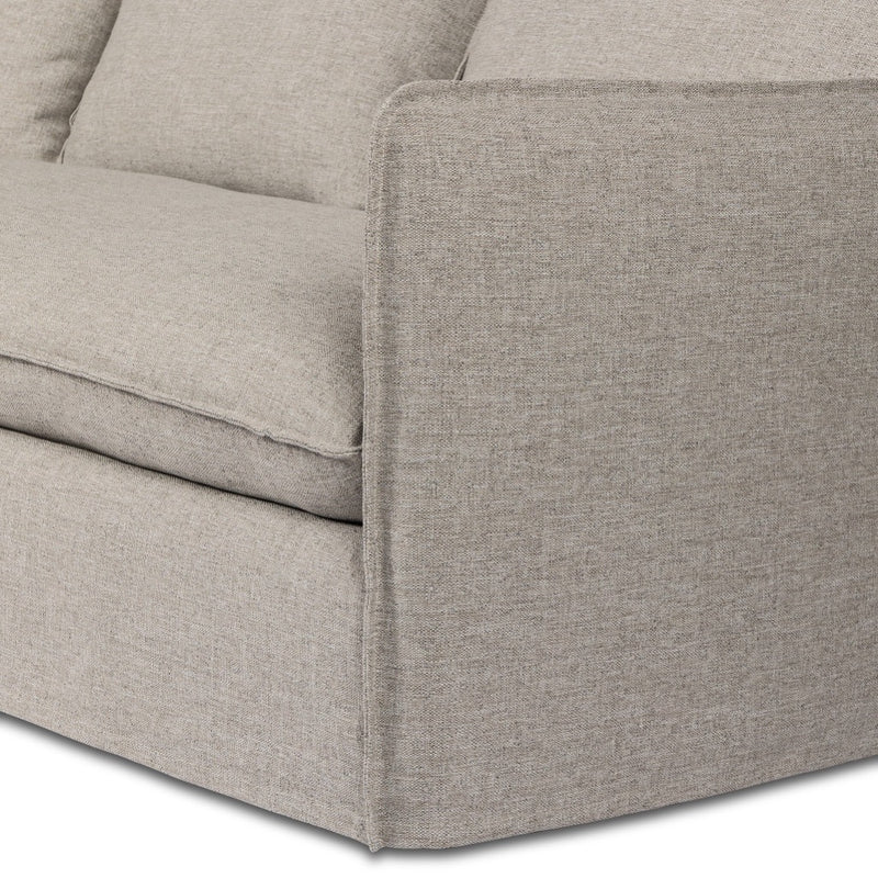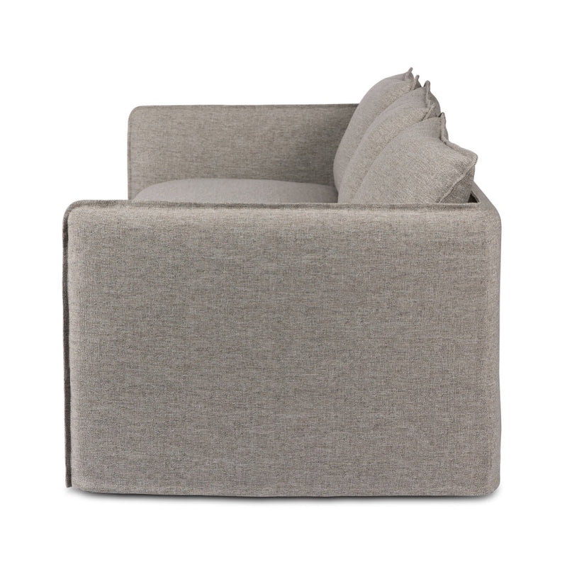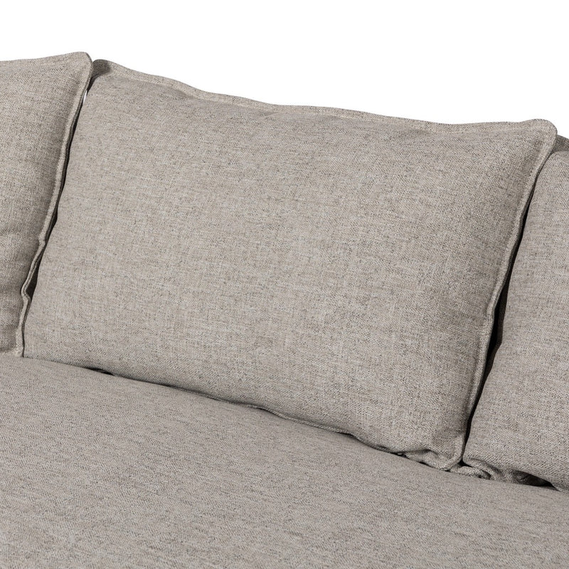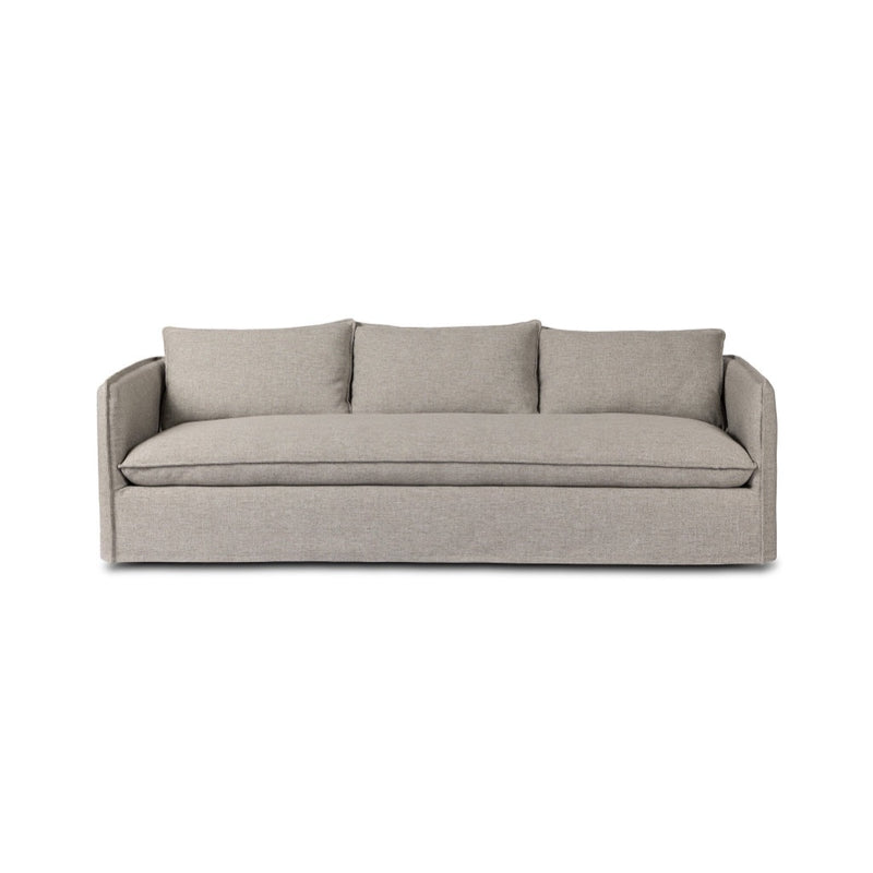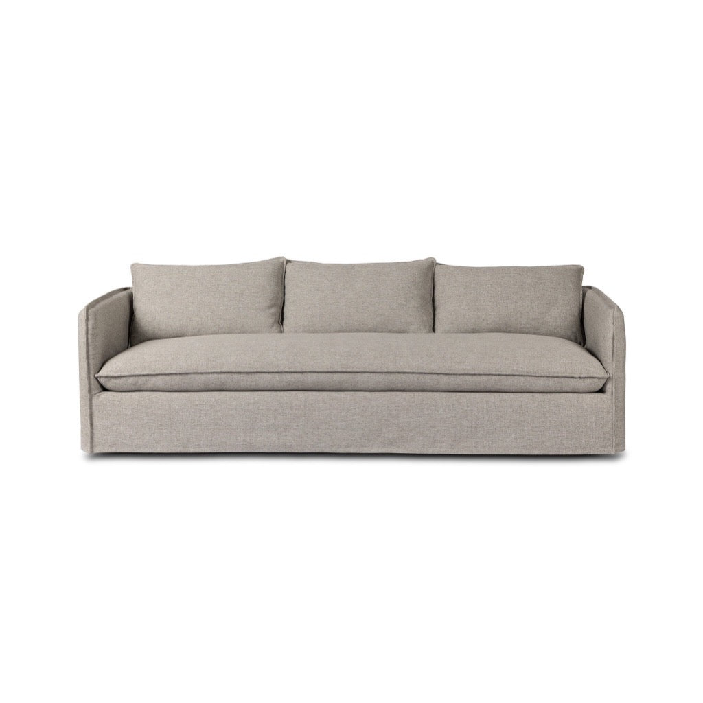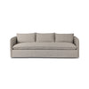An outdoor interpretation of an indoor silhouette. This outdoor sofa offers a clean, contemporary feel with relaxed casual comfort. A bench seat and loose back cushions feature removable, washable slipcovers with a simple flange detail. Sustainably made with zero waste, luxurious Italian upholstery places a new and unique spin on indoor/outdoor seating, offering soft, durable fabric that's highly resistant to sun, stains, mold and abrasion. Cover or store indoors during inclement weather and when not in use.
