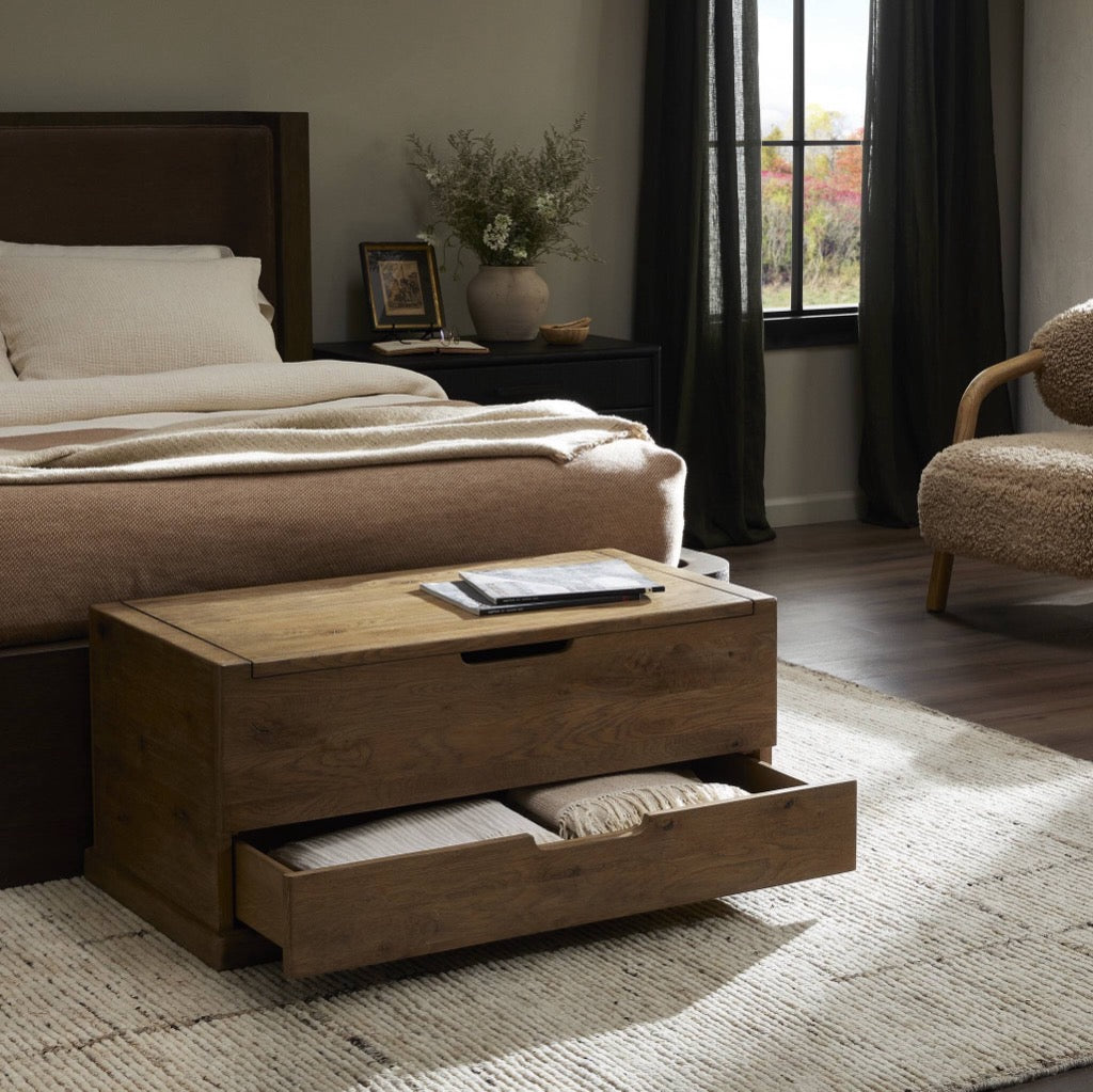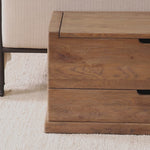Simple, streamlined storage. Weathered oak crafts two spacious drawers with subtle finger pulls in place of traditional hardware. Style in any room for more storage space.
