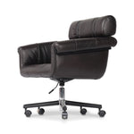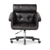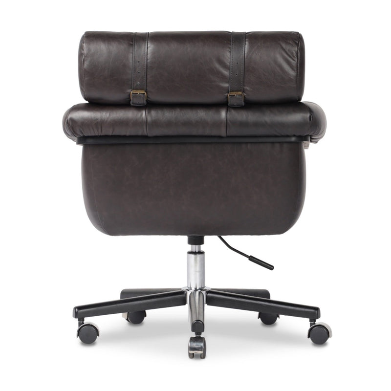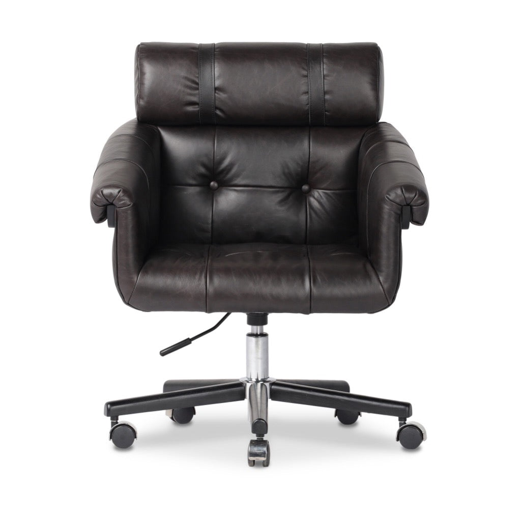 A detail-driven take on a new favorite desk chair. Made from black top-grain leather, a fully tufted seat means maximum comfort, while casters and seat height adjustability make for ease in the modern office.