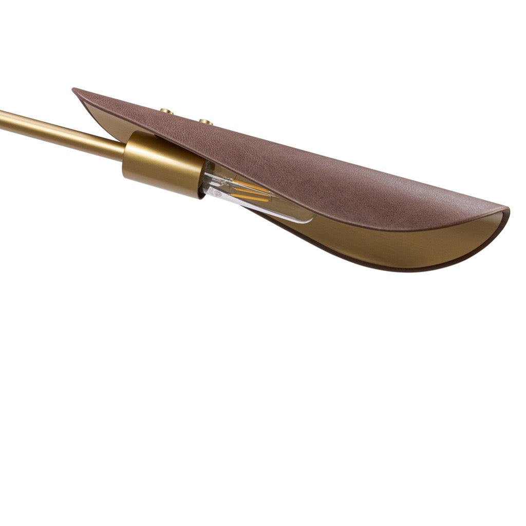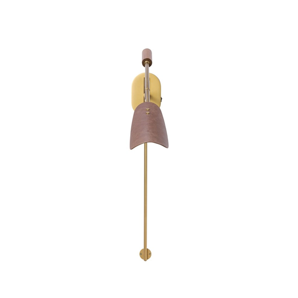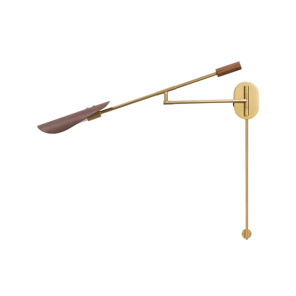 Brighten up the bedside, hallway and beyond with a versatile plug-in sconce, pairing solid walnut with brass-finished steel tubing and a brown top-grain leather shade. Arm and shade both move horizontally. T10 LED dimmable bulb included. This item is UL-listed and manufactured in compliance with North American standards.