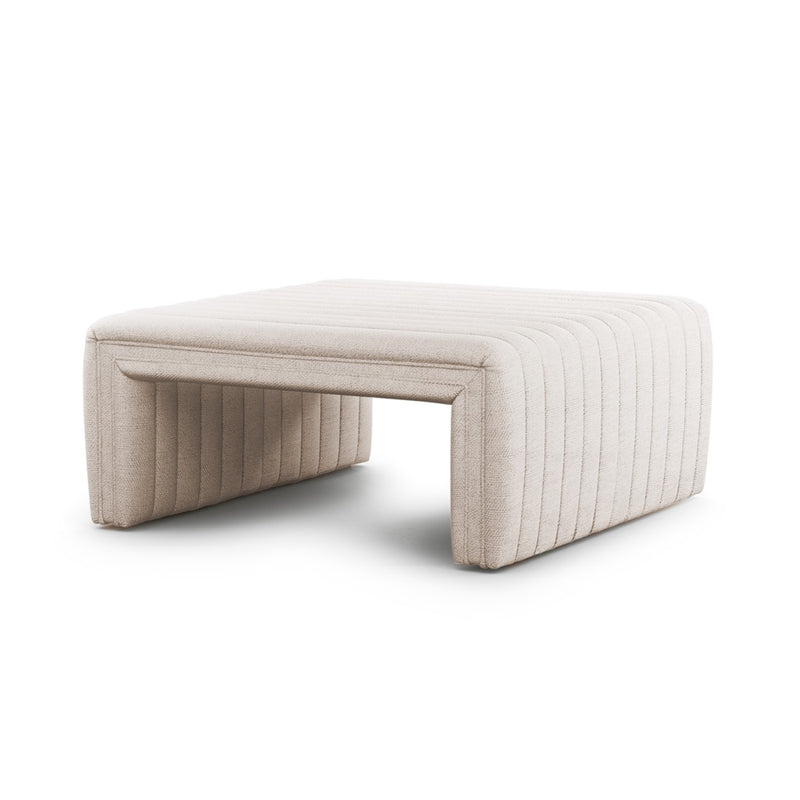 Layer in an extra surface or added seating by way of a linen-blend ottoman in a crisp, clean off-white, with dramatic channeling for great texture.