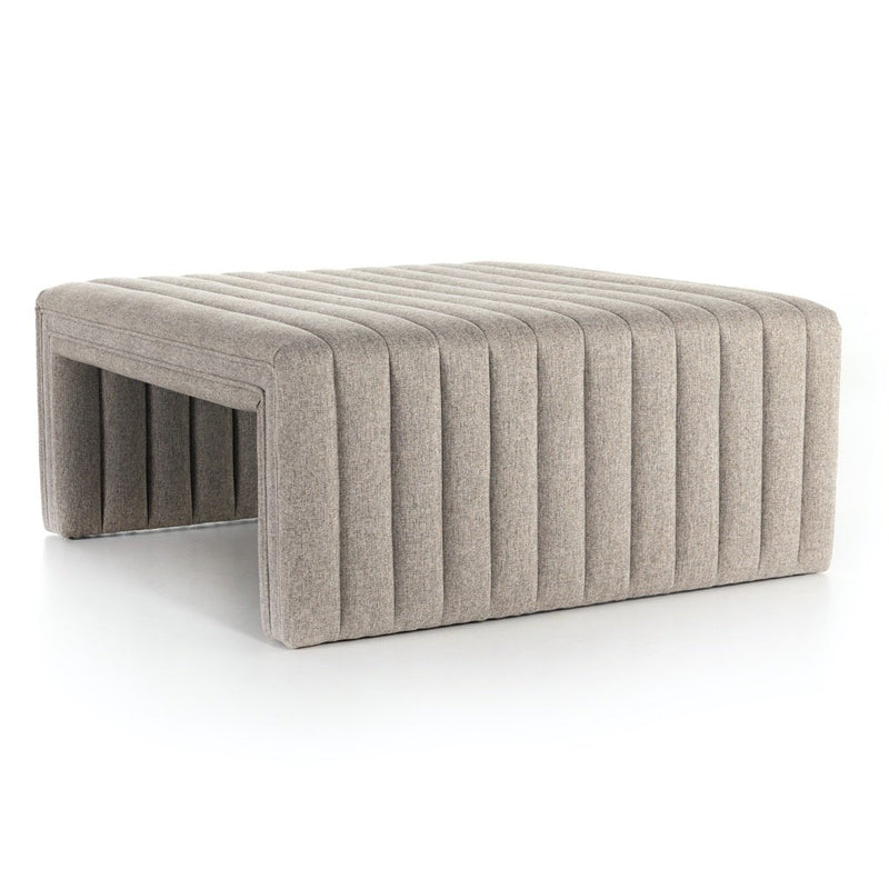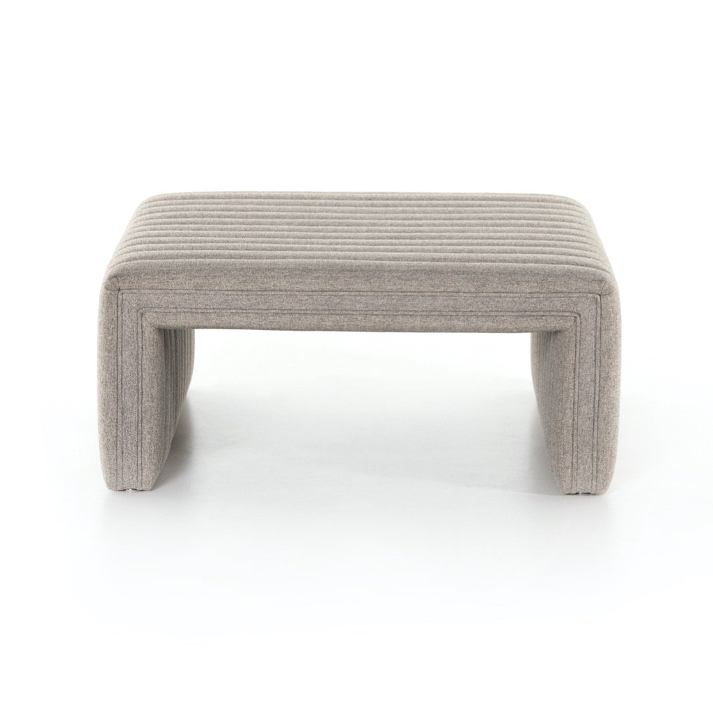 Layer in an extra surface or added seating by way of a linen-blend ottoman in a crisp, clean heathered grey, with dramatic channeling for great texture.